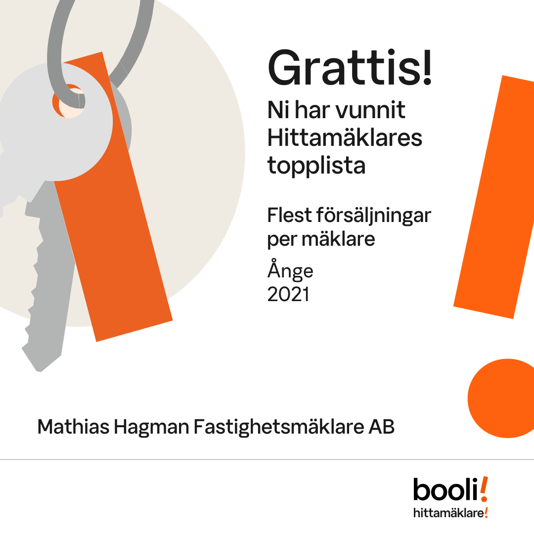 Statistik för publicerade bostäder, försäljningar och omdömen baseras på data från Booli och Hittamäklare. Statistiken för försäljningar avser inrapporterade och verifierade slutpriser från mäklare eller av Booli inhämtade och verifierade slutpriser. Statistiken för publicerade bostäder baseras på information som publicerats på Booli.se. Statistik för omdömen och rekommendationer baseras på omdömen från säljare som lämnats via Booli och Hittamäklare.
