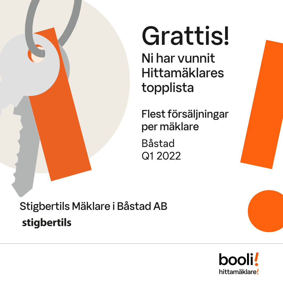 Statistik för publicerade bostäder, försäljningar och omdömen baseras på data från Booli och Hittamäklare. Statistiken för försäljningar avser inrapporterade och verifierade slutpriser från mäklare eller av Booli inhämtade och verifierade slutpriser. Statistiken för publicerade bostäder baseras på information som publicerats på Booli.se. Statistik för omdömen och rekommendationer baseras på omdömen från säljare som lämnats via Booli och Hittamäklare.