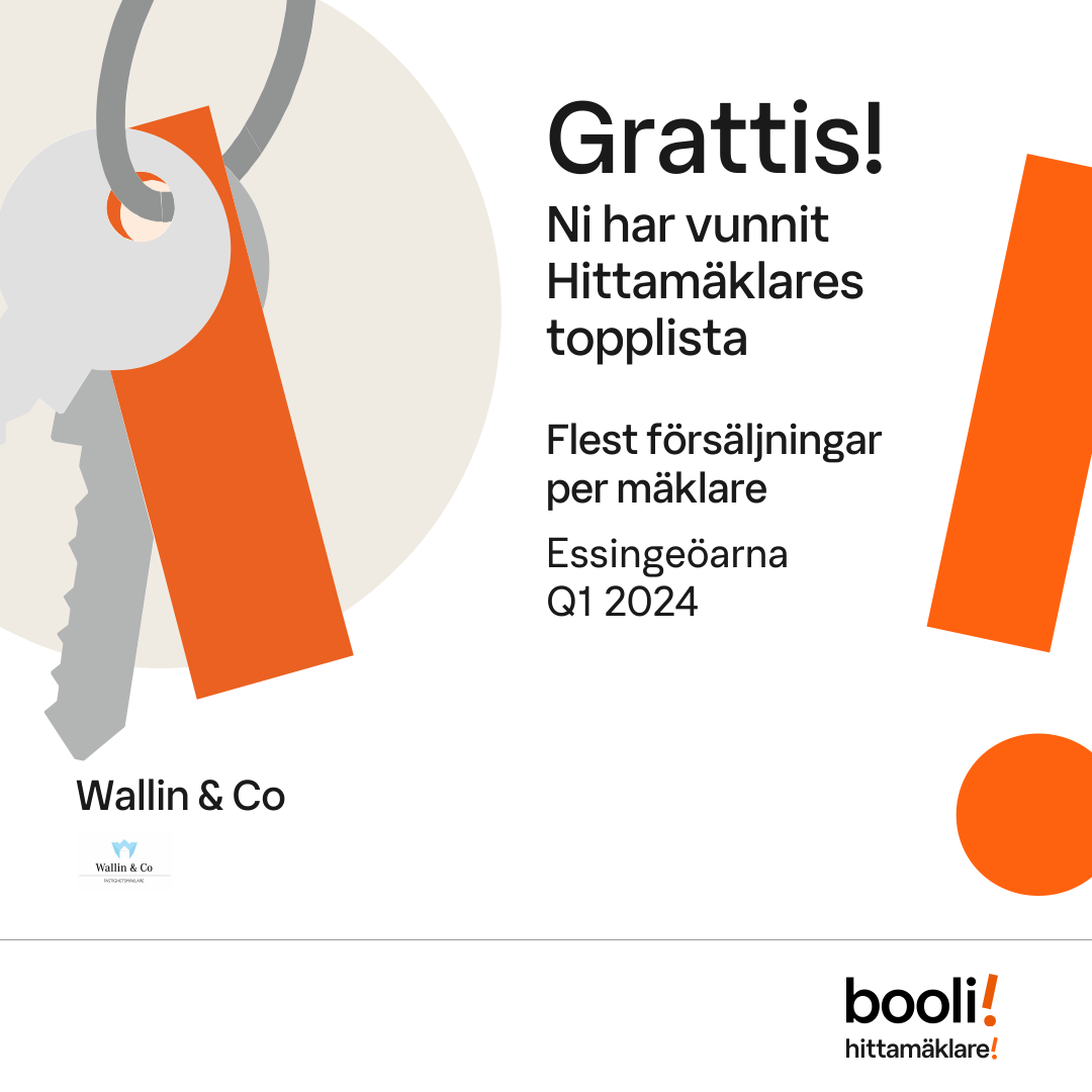 Statistik för publicerade bostäder, försäljningar och omdömen baseras på data från Booli och Hittamäklare. Statistiken för försäljningar avser inrapporterade och verifierade slutpriser från mäklare eller av Booli inhämtade och verifierade slutpriser. Statistiken för publicerade bostäder baseras på information som publicerats på Booli.se. Statistik för omdömen och rekommendationer baseras på omdömen från säljare som lämnats via Booli och Hittamäklare.