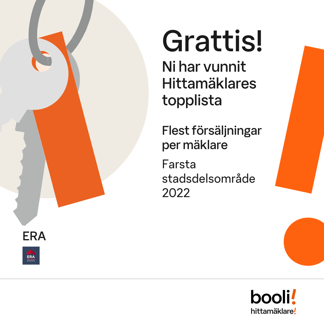 Statistik för publicerade bostäder, försäljningar och omdömen baseras på data från Booli och Hittamäklare. Statistiken för försäljningar avser inrapporterade och verifierade slutpriser från mäklare eller av Booli inhämtade och verifierade slutpriser. Statistiken för publicerade bostäder baseras på information som publicerats på Booli.se. Statistik för omdömen och rekommendationer baseras på omdömen från säljare som lämnats via Booli och Hittamäklare.