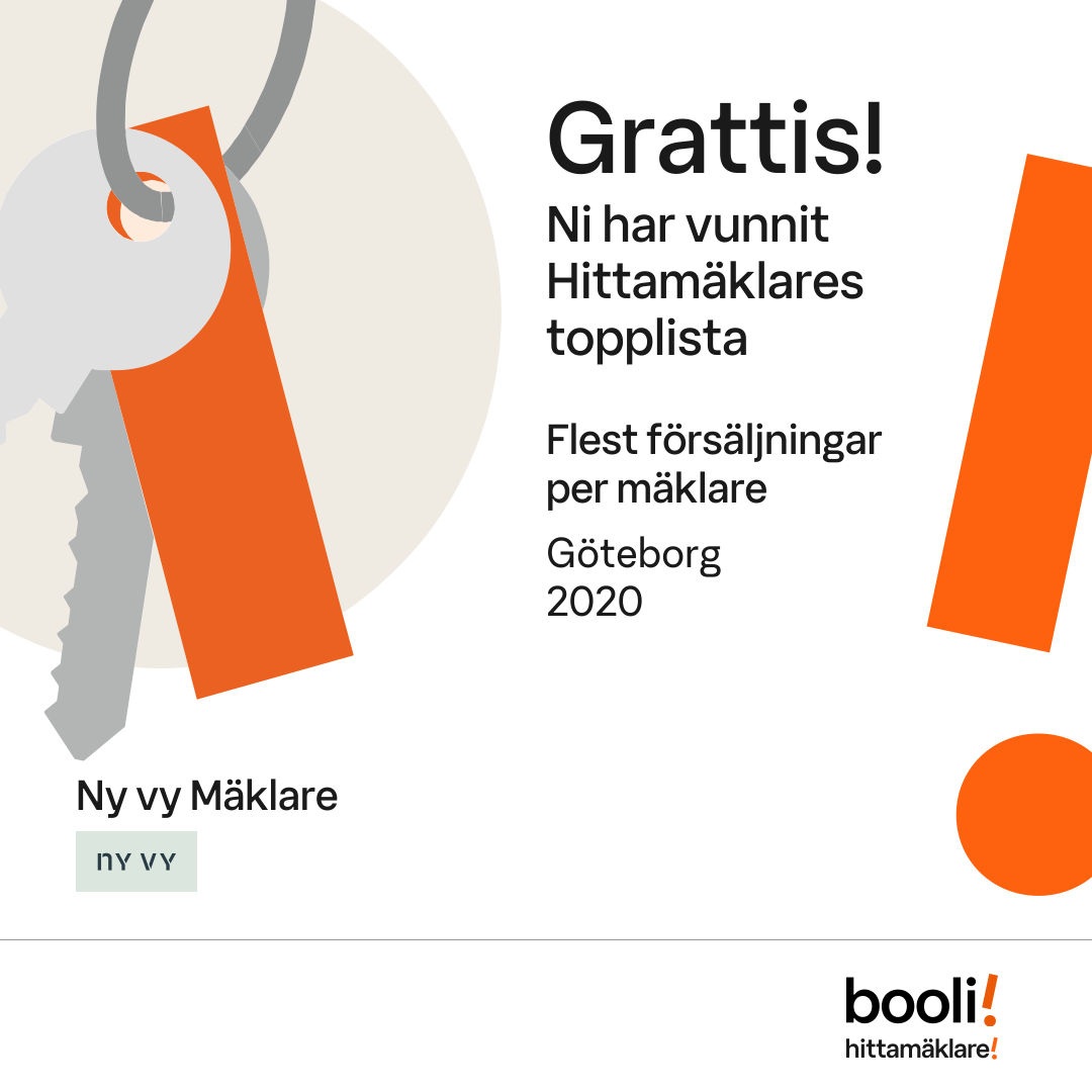 Statistik för publicerade bostäder, försäljningar och omdömen baseras på data från Booli och Hittamäklare. Statistiken för försäljningar avser inrapporterade och verifierade slutpriser från mäklare eller av Booli inhämtade och verifierade slutpriser. Statistiken för publicerade bostäder baseras på information som publicerats på Booli.se. Statistik för omdömen och rekommendationer baseras på omdömen från säljare som lämnats via Booli och Hittamäklare.