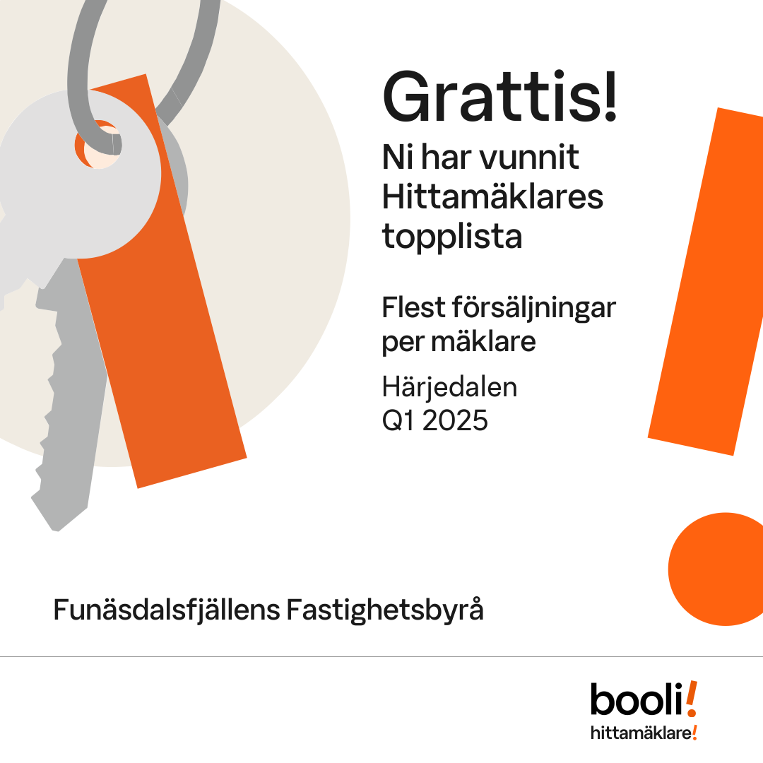 Statistik för publicerade bostäder, försäljningar och omdömen baseras på data från Booli och Hittamäklare. Statistiken för försäljningar avser inrapporterade och verifierade slutpriser från mäklare eller av Booli inhämtade och verifierade slutpriser. Statistiken för publicerade bostäder baseras på information som publicerats på Booli.se. Statistik för omdömen och rekommendationer baseras på omdömen från säljare som lämnats via Booli och Hittamäklare.