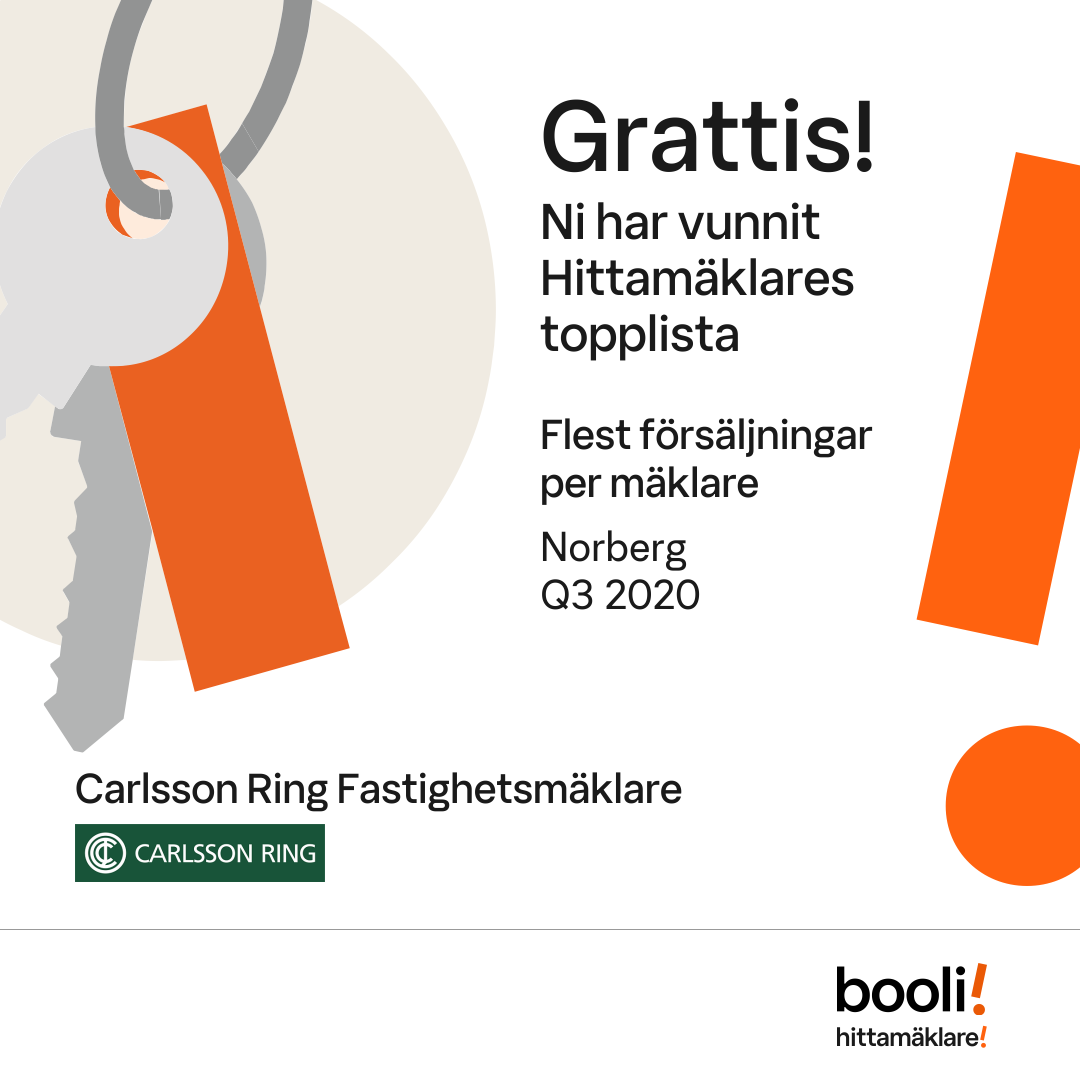 Statistik för publicerade bostäder, försäljningar och omdömen baseras på data från Booli och Hittamäklare. Statistiken för försäljningar avser inrapporterade och verifierade slutpriser från mäklare eller av Booli inhämtade och verifierade slutpriser. Statistiken för publicerade bostäder baseras på information som publicerats på Booli.se. Statistik för omdömen och rekommendationer baseras på omdömen från säljare som lämnats via Booli och Hittamäklare.