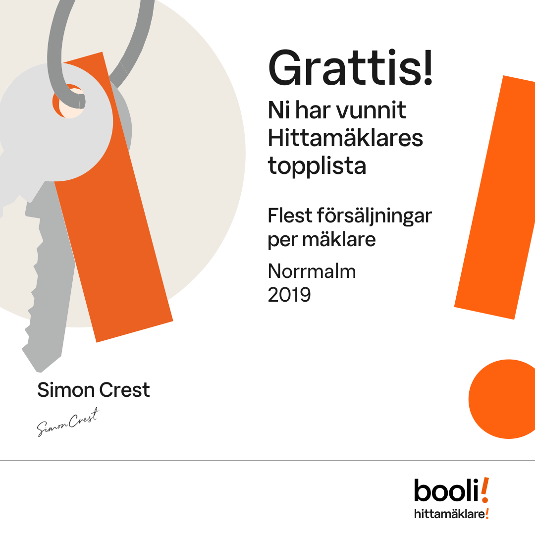Statistik för publicerade bostäder, försäljningar och omdömen baseras på data från Booli och Hittamäklare. Statistiken för försäljningar avser inrapporterade och verifierade slutpriser från mäklare eller av Booli inhämtade och verifierade slutpriser. Statistiken för publicerade bostäder baseras på information som publicerats på Booli.se. Statistik för omdömen och rekommendationer baseras på omdömen från säljare som lämnats via Booli och Hittamäklare.