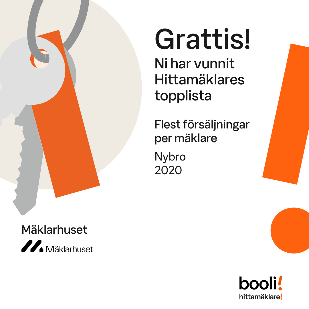 Statistik för publicerade bostäder, försäljningar och omdömen baseras på data från Booli och Hittamäklare. Statistiken för försäljningar avser inrapporterade och verifierade slutpriser från mäklare eller av Booli inhämtade och verifierade slutpriser. Statistiken för publicerade bostäder baseras på information som publicerats på Booli.se. Statistik för omdömen och rekommendationer baseras på omdömen från säljare som lämnats via Booli och Hittamäklare.