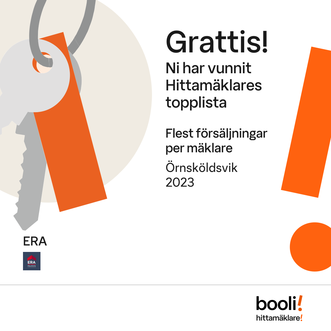 Statistik för publicerade bostäder, försäljningar och omdömen baseras på data från Booli och Hittamäklare. Statistiken för försäljningar avser inrapporterade och verifierade slutpriser från mäklare eller av Booli inhämtade och verifierade slutpriser. Statistiken för publicerade bostäder baseras på information som publicerats på Booli.se. Statistik för omdömen och rekommendationer baseras på omdömen från säljare som lämnats via Booli och Hittamäklare.
