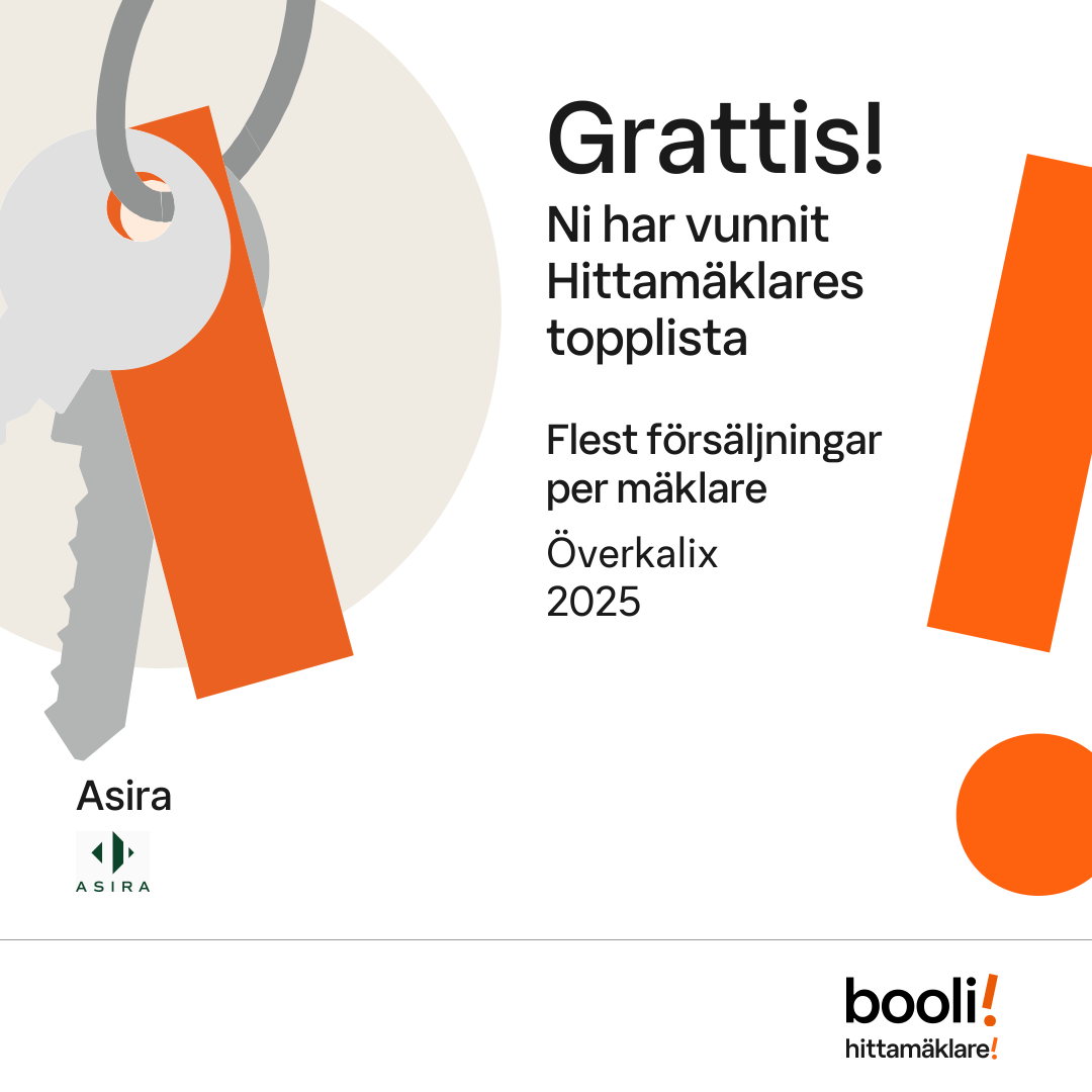 Statistik för publicerade bostäder, försäljningar och omdömen baseras på data från Booli och Hittamäklare. Statistiken för försäljningar avser inrapporterade och verifierade slutpriser från mäklare eller av Booli inhämtade och verifierade slutpriser. Statistiken för publicerade bostäder baseras på information som publicerats på Booli.se. Statistik för omdömen och rekommendationer baseras på omdömen från säljare som lämnats via Booli och Hittamäklare.
