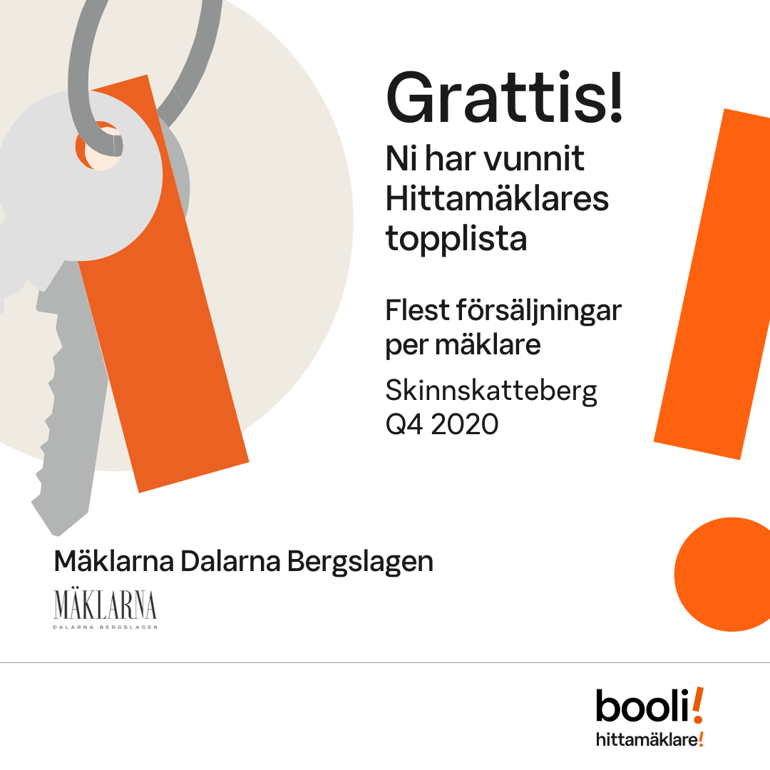 Statistik för publicerade bostäder, försäljningar och omdömen baseras på data från Booli och Hittamäklare. Statistiken för försäljningar avser inrapporterade och verifierade slutpriser från mäklare eller av Booli inhämtade och verifierade slutpriser. Statistiken för publicerade bostäder baseras på information som publicerats på Booli.se. Statistik för omdömen och rekommendationer baseras på omdömen från säljare som lämnats via Booli och Hittamäklare.