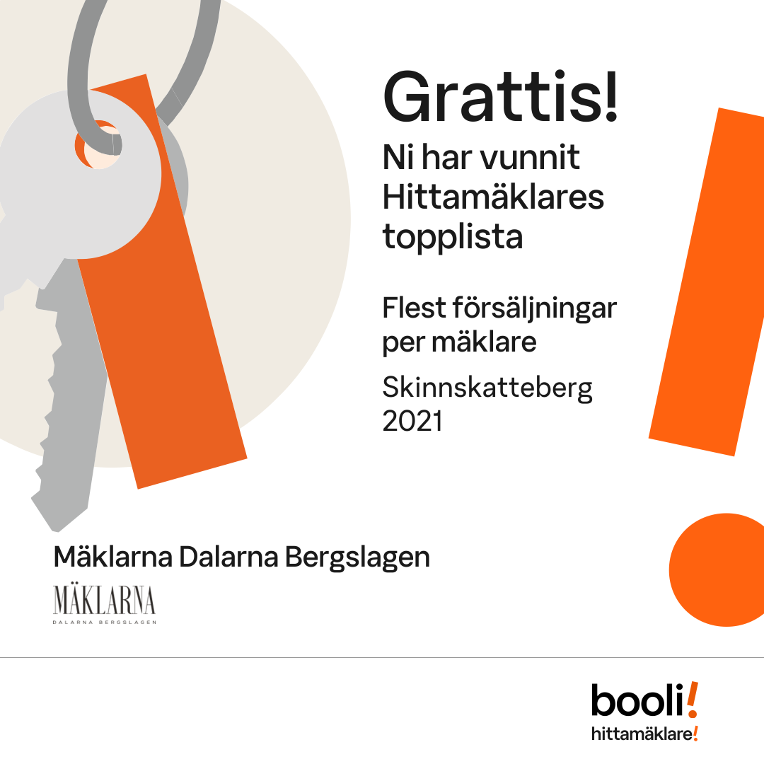 Statistik för publicerade bostäder, försäljningar och omdömen baseras på data från Booli och Hittamäklare. Statistiken för försäljningar avser inrapporterade och verifierade slutpriser från mäklare eller av Booli inhämtade och verifierade slutpriser. Statistiken för publicerade bostäder baseras på information som publicerats på Booli.se. Statistik för omdömen och rekommendationer baseras på omdömen från säljare som lämnats via Booli och Hittamäklare.