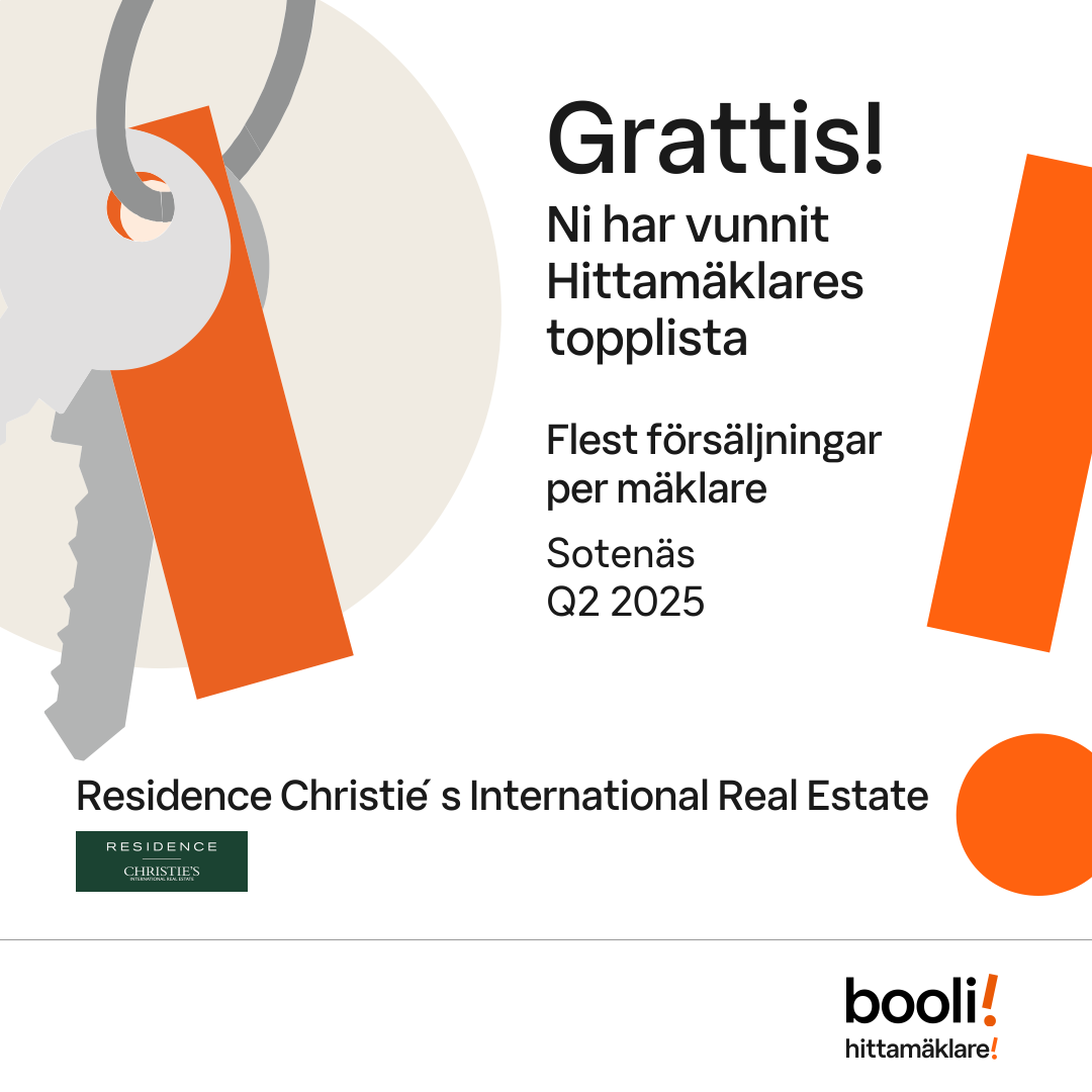 Statistik för publicerade bostäder, försäljningar och omdömen baseras på data från Booli och Hittamäklare. Statistiken för försäljningar avser inrapporterade och verifierade slutpriser från mäklare eller av Booli inhämtade och verifierade slutpriser. Statistiken för publicerade bostäder baseras på information som publicerats på Booli.se. Statistik för omdömen och rekommendationer baseras på omdömen från säljare som lämnats via Booli och Hittamäklare.