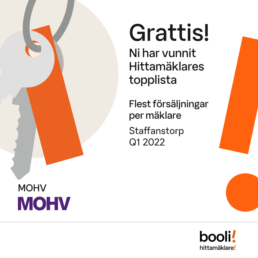 Statistik för publicerade bostäder, försäljningar och omdömen baseras på data från Booli och Hittamäklare. Statistiken för försäljningar avser inrapporterade och verifierade slutpriser från mäklare eller av Booli inhämtade och verifierade slutpriser. Statistiken för publicerade bostäder baseras på information som publicerats på Booli.se. Statistik för omdömen och rekommendationer baseras på omdömen från säljare som lämnats via Booli och Hittamäklare.