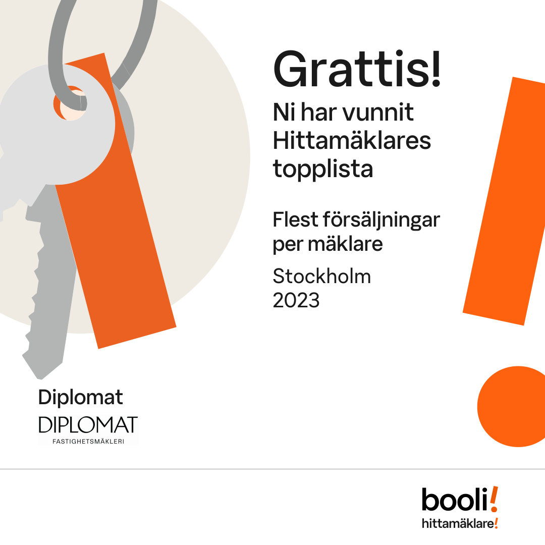 Statistik för publicerade bostäder, försäljningar och omdömen baseras på data från Booli och Hittamäklare. Statistiken för försäljningar avser inrapporterade och verifierade slutpriser från mäklare eller av Booli inhämtade och verifierade slutpriser. Statistiken för publicerade bostäder baseras på information som publicerats på Booli.se. Statistik för omdömen och rekommendationer baseras på omdömen från säljare som lämnats via Booli och Hittamäklare.