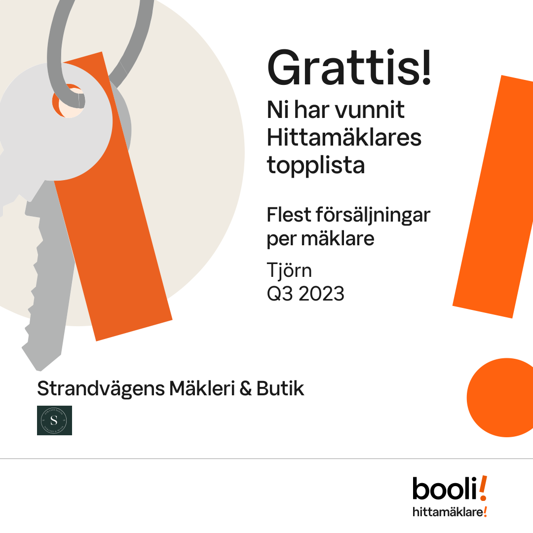 Statistik för publicerade bostäder, försäljningar och omdömen baseras på data från Booli och Hittamäklare. Statistiken för försäljningar avser inrapporterade och verifierade slutpriser från mäklare eller av Booli inhämtade och verifierade slutpriser. Statistiken för publicerade bostäder baseras på information som publicerats på Booli.se. Statistik för omdömen och rekommendationer baseras på omdömen från säljare som lämnats via Booli och Hittamäklare.