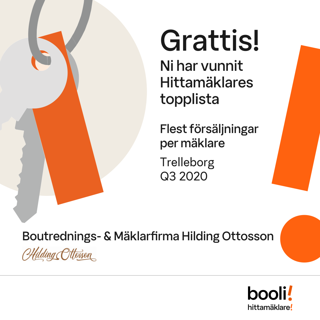 Statistik för publicerade bostäder, försäljningar och omdömen baseras på data från Booli och Hittamäklare. Statistiken för försäljningar avser inrapporterade och verifierade slutpriser från mäklare eller av Booli inhämtade och verifierade slutpriser. Statistiken för publicerade bostäder baseras på information som publicerats på Booli.se. Statistik för omdömen och rekommendationer baseras på omdömen från säljare som lämnats via Booli och Hittamäklare.