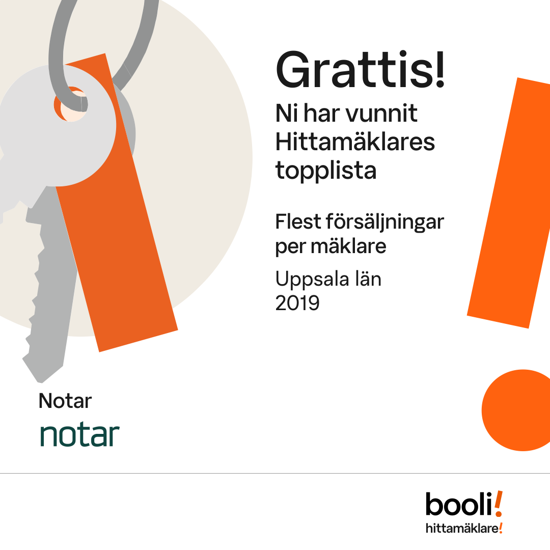 Statistik för publicerade bostäder, försäljningar och omdömen baseras på data från Booli och Hittamäklare. Statistiken för försäljningar avser inrapporterade och verifierade slutpriser från mäklare eller av Booli inhämtade och verifierade slutpriser. Statistiken för publicerade bostäder baseras på information som publicerats på Booli.se. Statistik för omdömen och rekommendationer baseras på omdömen från säljare som lämnats via Booli och Hittamäklare.