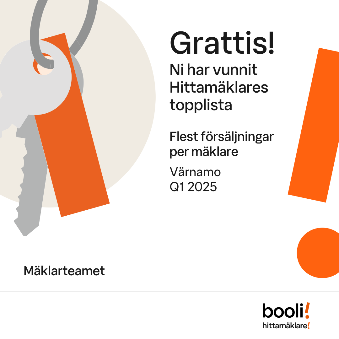 Statistik för publicerade bostäder, försäljningar och omdömen baseras på data från Booli och Hittamäklare. Statistiken för försäljningar avser inrapporterade och verifierade slutpriser från mäklare eller av Booli inhämtade och verifierade slutpriser. Statistiken för publicerade bostäder baseras på information som publicerats på Booli.se. Statistik för omdömen och rekommendationer baseras på omdömen från säljare som lämnats via Booli och Hittamäklare.