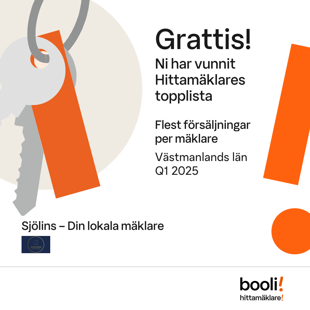 Statistik för publicerade bostäder, försäljningar och omdömen baseras på data från Booli och Hittamäklare. Statistiken för försäljningar avser inrapporterade och verifierade slutpriser från mäklare eller av Booli inhämtade och verifierade slutpriser. Statistiken för publicerade bostäder baseras på information som publicerats på Booli.se. Statistik för omdömen och rekommendationer baseras på omdömen från säljare som lämnats via Booli och Hittamäklare.