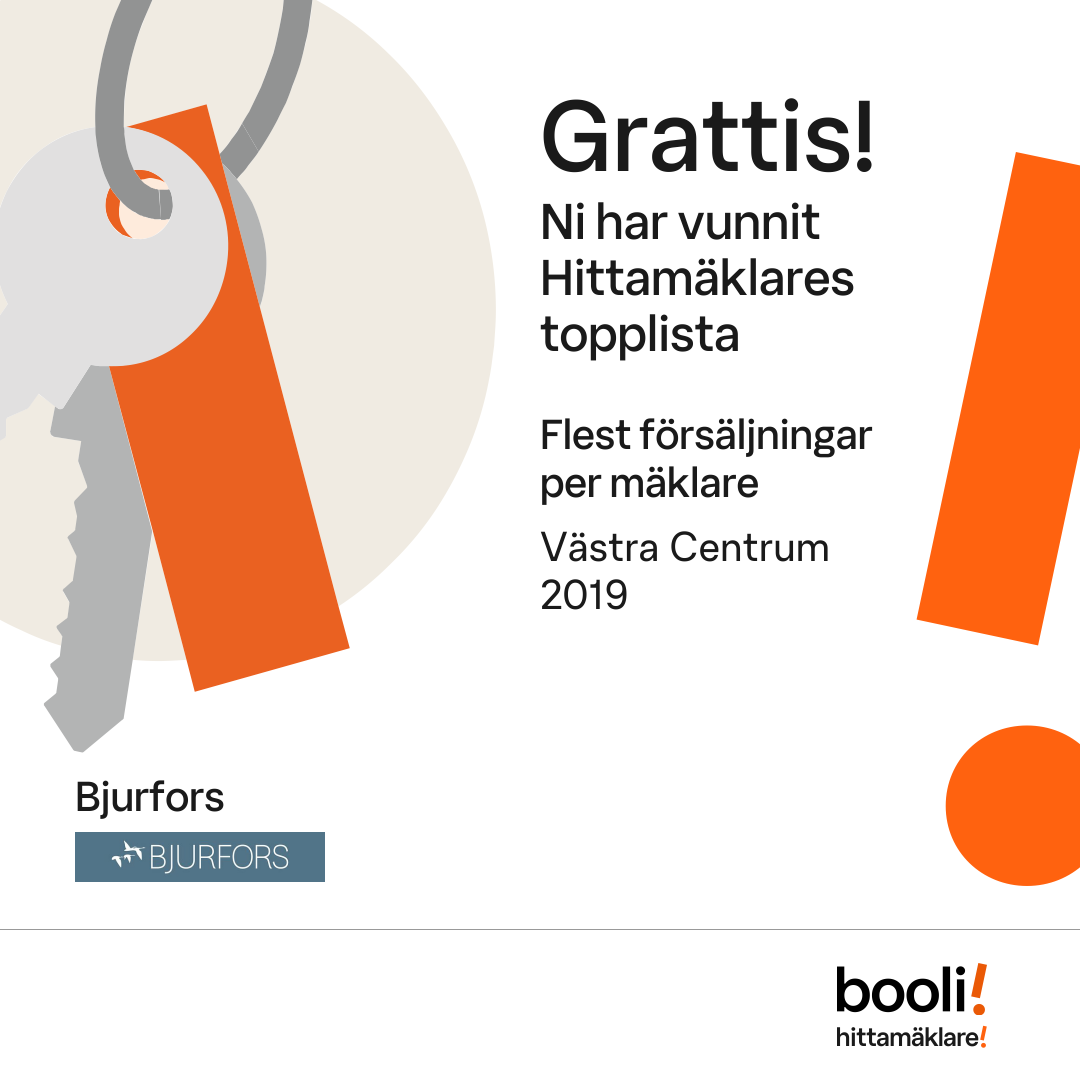 Statistik för publicerade bostäder, försäljningar och omdömen baseras på data från Booli och Hittamäklare. Statistiken för försäljningar avser inrapporterade och verifierade slutpriser från mäklare eller av Booli inhämtade och verifierade slutpriser. Statistiken för publicerade bostäder baseras på information som publicerats på Booli.se. Statistik för omdömen och rekommendationer baseras på omdömen från säljare som lämnats via Booli och Hittamäklare.