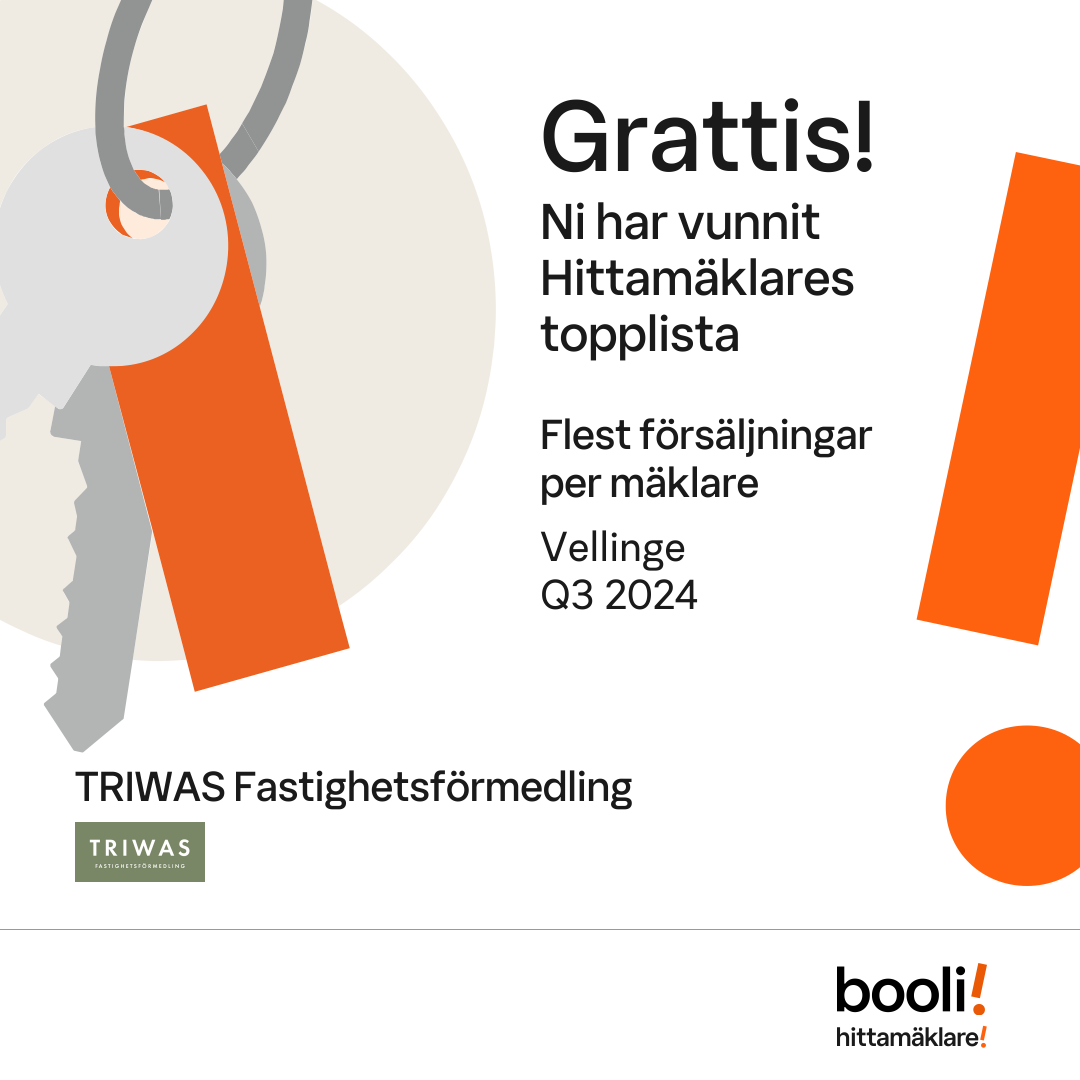 Statistik för publicerade bostäder, försäljningar och omdömen baseras på data från Booli och Hittamäklare. Statistiken för försäljningar avser inrapporterade och verifierade slutpriser från mäklare eller av Booli inhämtade och verifierade slutpriser. Statistiken för publicerade bostäder baseras på information som publicerats på Booli.se. Statistik för omdömen och rekommendationer baseras på omdömen från säljare som lämnats via Booli och Hittamäklare.