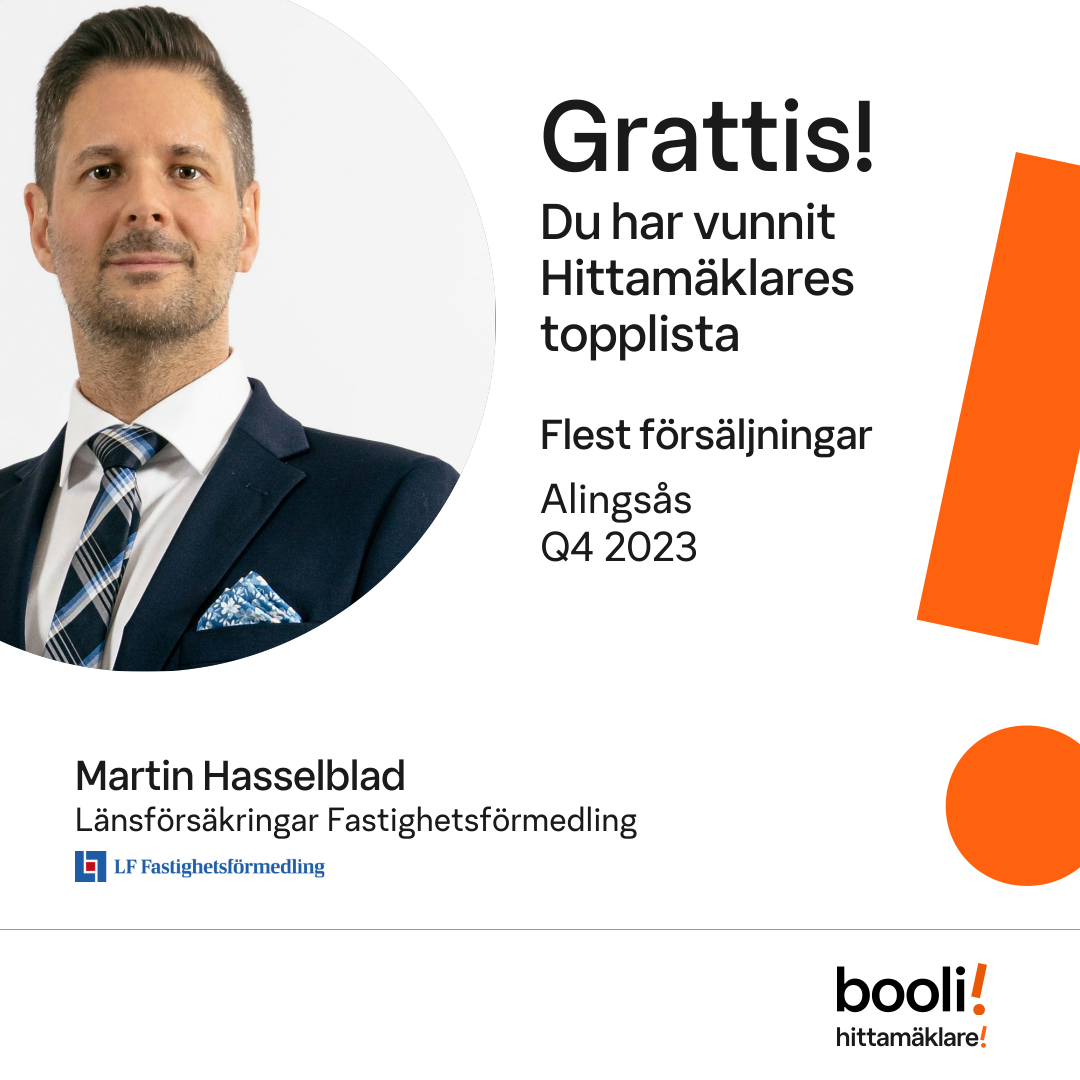 Statistik för publicerade bostäder, försäljningar och omdömen baseras på data från Booli och Hittamäklare. Statistiken för försäljningar avser inrapporterade och verifierade slutpriser från mäklare eller av Booli inhämtade och verifierade slutpriser. Statistiken för publicerade bostäder baseras på information som publicerats på Booli.se. Statistik för omdömen och rekommendationer baseras på omdömen från säljare som lämnats via Booli och Hittamäklare.
