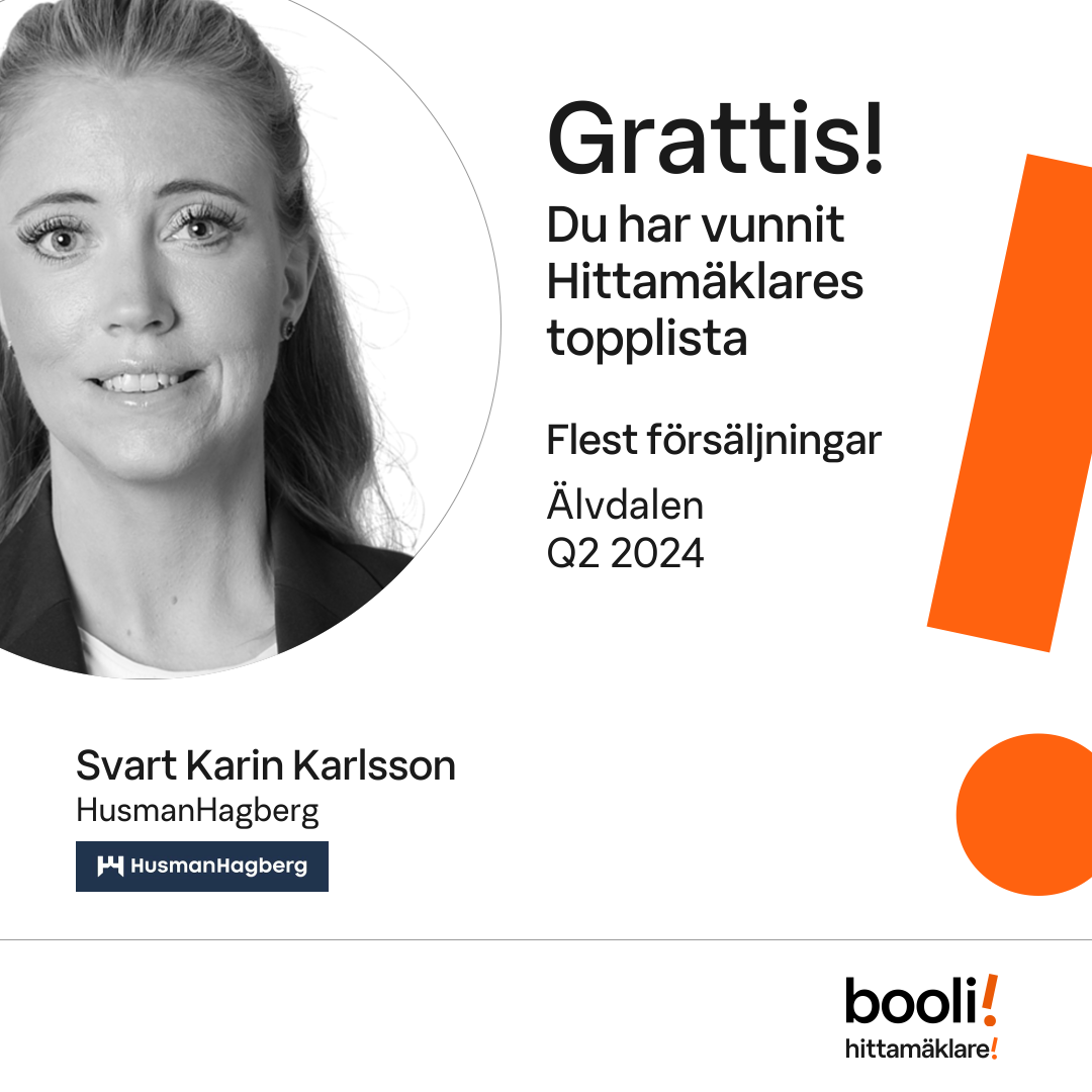 Statistik för publicerade bostäder, försäljningar och omdömen baseras på data från Booli och Hittamäklare. Statistiken för försäljningar avser inrapporterade och verifierade slutpriser från mäklare eller av Booli inhämtade och verifierade slutpriser. Statistiken för publicerade bostäder baseras på information som publicerats på Booli.se. Statistik för omdömen och rekommendationer baseras på omdömen från säljare som lämnats via Booli och Hittamäklare.