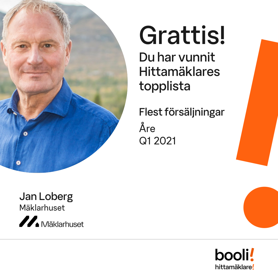 Statistik för publicerade bostäder, försäljningar och omdömen baseras på data från Booli och Hittamäklare. Statistiken för försäljningar avser inrapporterade och verifierade slutpriser från mäklare eller av Booli inhämtade och verifierade slutpriser. Statistiken för publicerade bostäder baseras på information som publicerats på Booli.se. Statistik för omdömen och rekommendationer baseras på omdömen från säljare som lämnats via Booli och Hittamäklare.