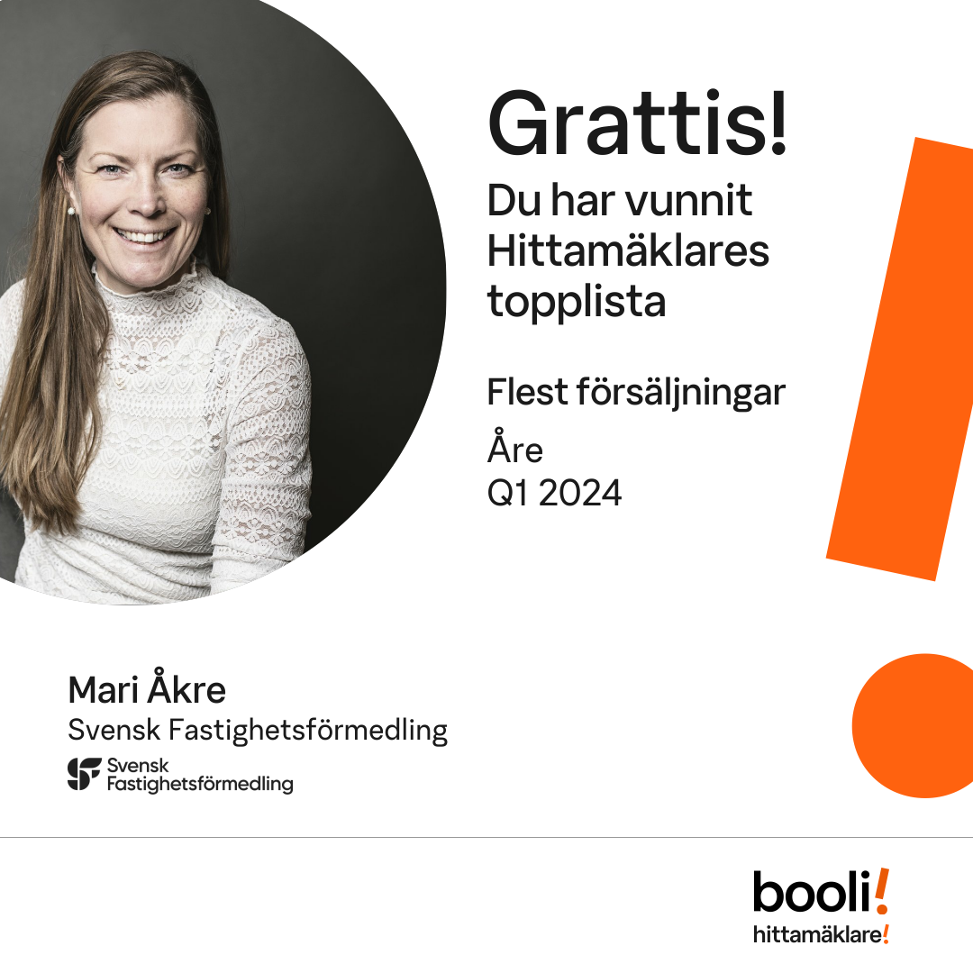 Statistik för publicerade bostäder, försäljningar och omdömen baseras på data från Booli och Hittamäklare. Statistiken för försäljningar avser inrapporterade och verifierade slutpriser från mäklare eller av Booli inhämtade och verifierade slutpriser. Statistiken för publicerade bostäder baseras på information som publicerats på Booli.se. Statistik för omdömen och rekommendationer baseras på omdömen från säljare som lämnats via Booli och Hittamäklare.