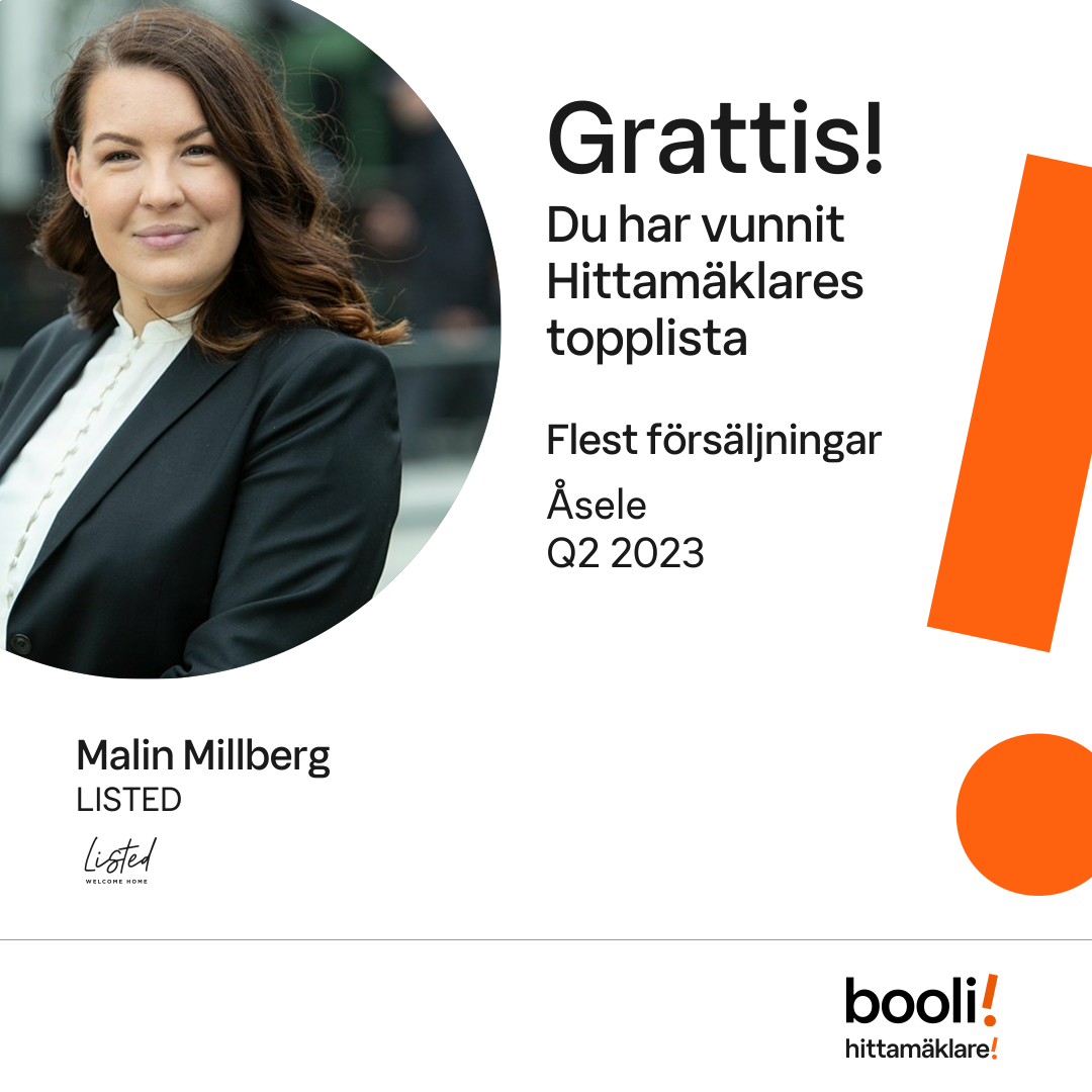 Statistik för publicerade bostäder, försäljningar och omdömen baseras på data från Booli och Hittamäklare. Statistiken för försäljningar avser inrapporterade och verifierade slutpriser från mäklare eller av Booli inhämtade och verifierade slutpriser. Statistiken för publicerade bostäder baseras på information som publicerats på Booli.se. Statistik för omdömen och rekommendationer baseras på omdömen från säljare som lämnats via Booli och Hittamäklare.