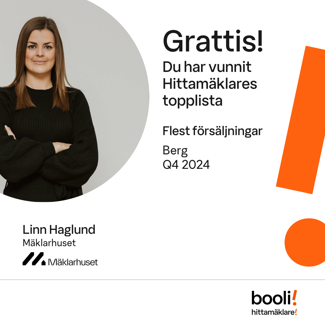 Statistik för publicerade bostäder, försäljningar och omdömen baseras på data från Booli och Hittamäklare. Statistiken för försäljningar avser inrapporterade och verifierade slutpriser från mäklare eller av Booli inhämtade och verifierade slutpriser. Statistiken för publicerade bostäder baseras på information som publicerats på Booli.se. Statistik för omdömen och rekommendationer baseras på omdömen från säljare som lämnats via Booli och Hittamäklare.