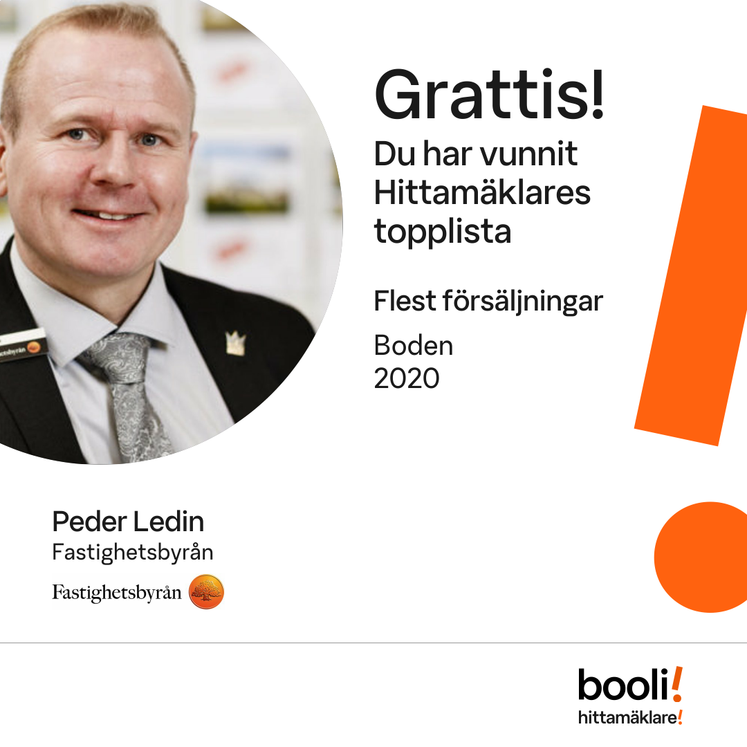 Statistik för publicerade bostäder, försäljningar och omdömen baseras på data från Booli och Hittamäklare. Statistiken för försäljningar avser inrapporterade och verifierade slutpriser från mäklare eller av Booli inhämtade och verifierade slutpriser. Statistiken för publicerade bostäder baseras på information som publicerats på Booli.se. Statistik för omdömen och rekommendationer baseras på omdömen från säljare som lämnats via Booli och Hittamäklare.