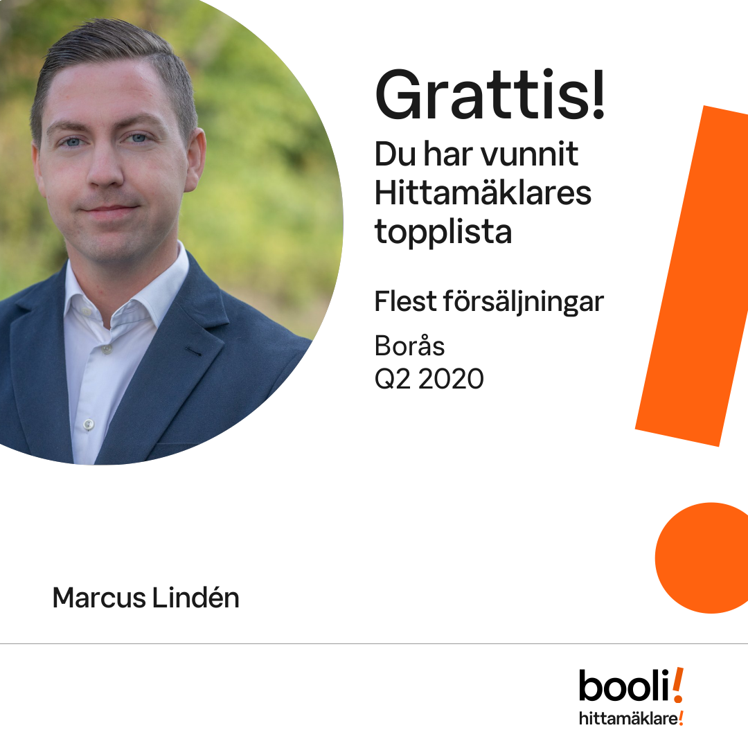 Statistik för publicerade bostäder, försäljningar och omdömen baseras på data från Booli och Hittamäklare. Statistiken för försäljningar avser inrapporterade och verifierade slutpriser från mäklare eller av Booli inhämtade och verifierade slutpriser. Statistiken för publicerade bostäder baseras på information som publicerats på Booli.se. Statistik för omdömen och rekommendationer baseras på omdömen från säljare som lämnats via Booli och Hittamäklare.