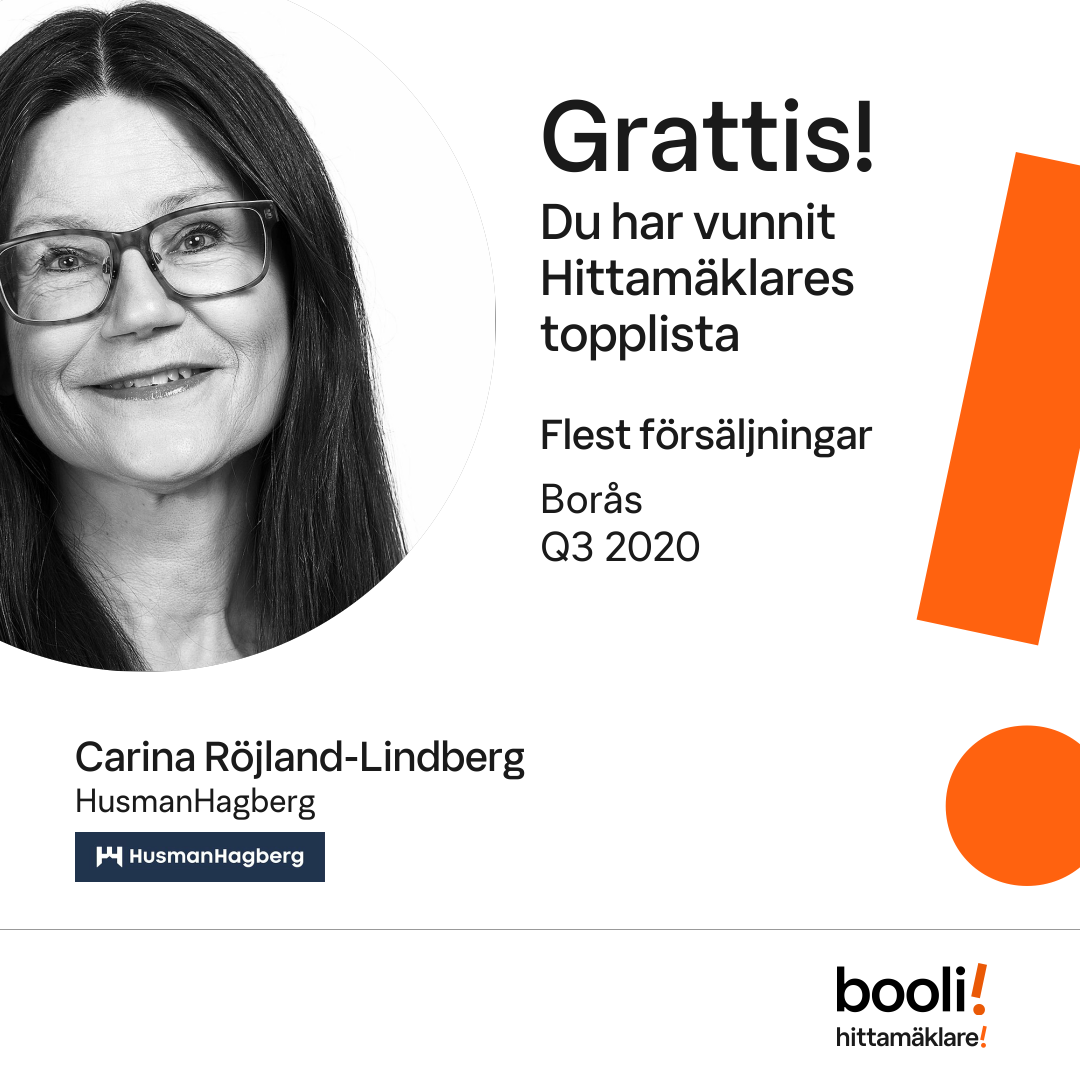 Statistik för publicerade bostäder, försäljningar och omdömen baseras på data från Booli och Hittamäklare. Statistiken för försäljningar avser inrapporterade och verifierade slutpriser från mäklare eller av Booli inhämtade och verifierade slutpriser. Statistiken för publicerade bostäder baseras på information som publicerats på Booli.se. Statistik för omdömen och rekommendationer baseras på omdömen från säljare som lämnats via Booli och Hittamäklare.