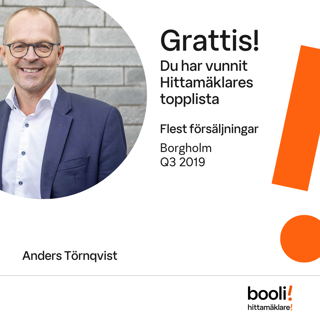 Statistik för publicerade bostäder, försäljningar och omdömen baseras på data från Booli och Hittamäklare. Statistiken för försäljningar avser inrapporterade och verifierade slutpriser från mäklare eller av Booli inhämtade och verifierade slutpriser. Statistiken för publicerade bostäder baseras på information som publicerats på Booli.se. Statistik för omdömen och rekommendationer baseras på omdömen från säljare som lämnats via Booli och Hittamäklare.