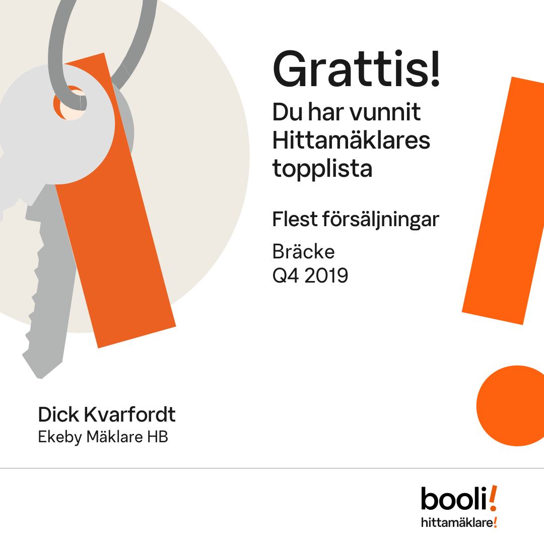 Statistik för publicerade bostäder, försäljningar och omdömen baseras på data från Booli och Hittamäklare. Statistiken för försäljningar avser inrapporterade och verifierade slutpriser från mäklare eller av Booli inhämtade och verifierade slutpriser. Statistiken för publicerade bostäder baseras på information som publicerats på Booli.se. Statistik för omdömen och rekommendationer baseras på omdömen från säljare som lämnats via Booli och Hittamäklare.