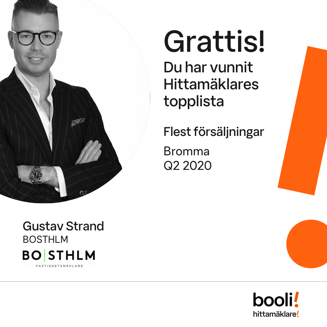Statistik för publicerade bostäder, försäljningar och omdömen baseras på data från Booli och Hittamäklare. Statistiken för försäljningar avser inrapporterade och verifierade slutpriser från mäklare eller av Booli inhämtade och verifierade slutpriser. Statistiken för publicerade bostäder baseras på information som publicerats på Booli.se. Statistik för omdömen och rekommendationer baseras på omdömen från säljare som lämnats via Booli och Hittamäklare.
