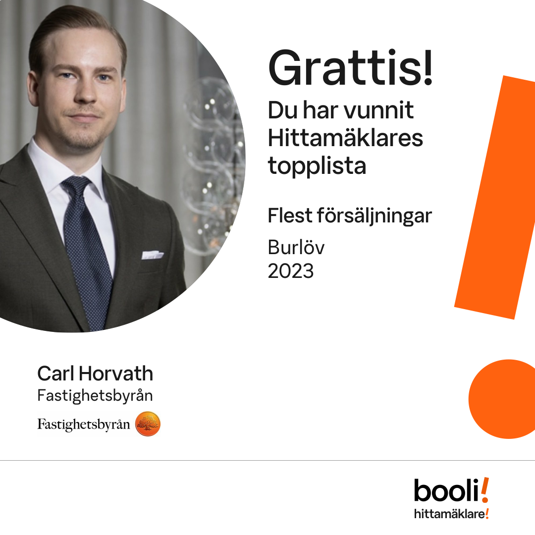 Statistik för publicerade bostäder, försäljningar och omdömen baseras på data från Booli och Hittamäklare. Statistiken för försäljningar avser inrapporterade och verifierade slutpriser från mäklare eller av Booli inhämtade och verifierade slutpriser. Statistiken för publicerade bostäder baseras på information som publicerats på Booli.se. Statistik för omdömen och rekommendationer baseras på omdömen från säljare som lämnats via Booli och Hittamäklare.
