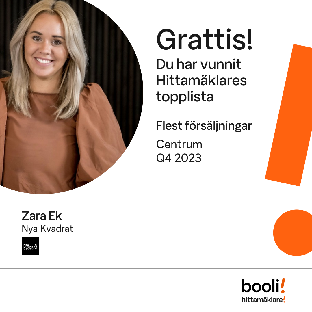 Statistik för publicerade bostäder, försäljningar och omdömen baseras på data från Booli och Hittamäklare. Statistiken för försäljningar avser inrapporterade och verifierade slutpriser från mäklare eller av Booli inhämtade och verifierade slutpriser. Statistiken för publicerade bostäder baseras på information som publicerats på Booli.se. Statistik för omdömen och rekommendationer baseras på omdömen från säljare som lämnats via Booli och Hittamäklare.