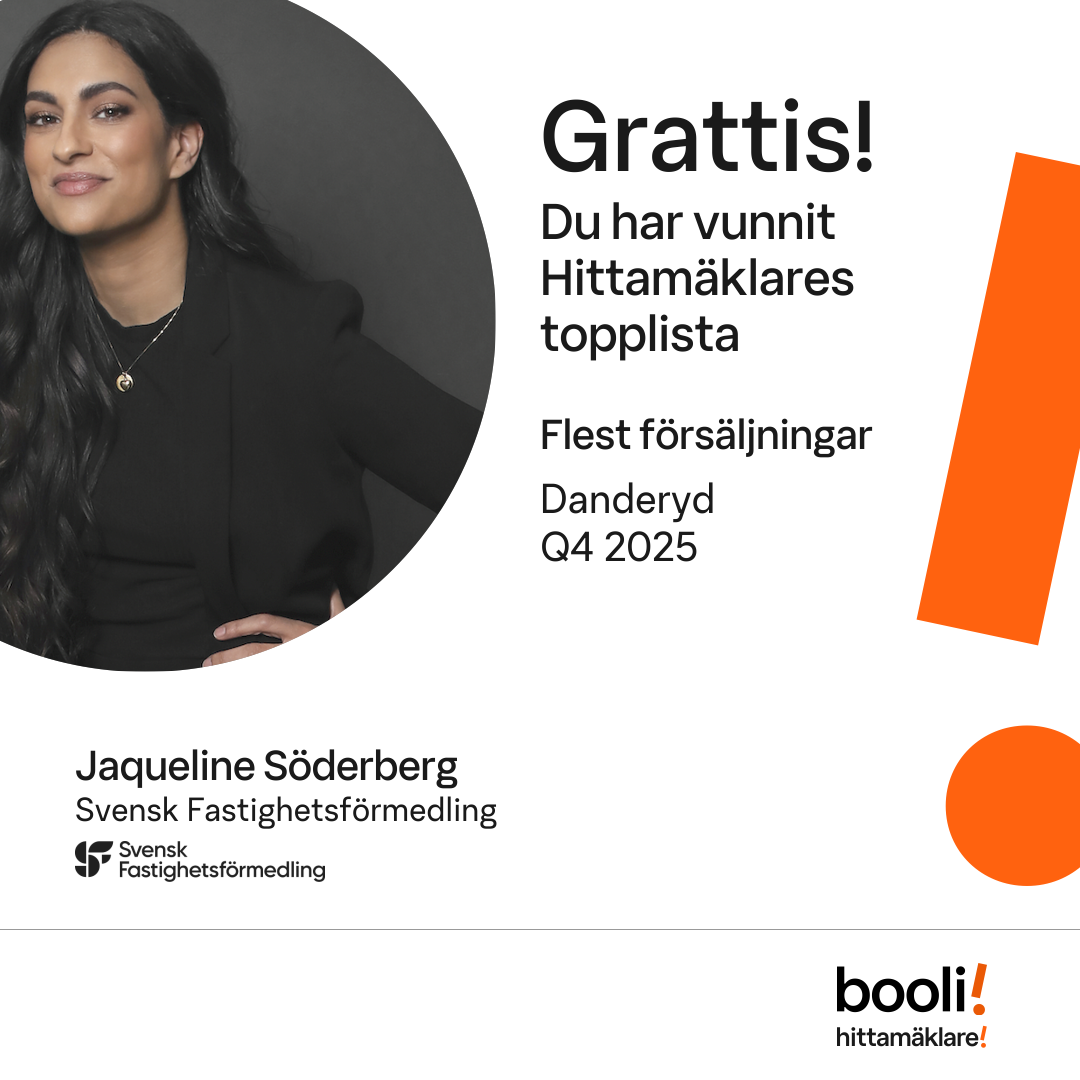 Statistik för publicerade bostäder, försäljningar och omdömen baseras på data från Booli och Hittamäklare. Statistiken för försäljningar avser inrapporterade och verifierade slutpriser från mäklare eller av Booli inhämtade och verifierade slutpriser. Statistiken för publicerade bostäder baseras på information som publicerats på Booli.se. Statistik för omdömen och rekommendationer baseras på omdömen från säljare som lämnats via Booli och Hittamäklare.