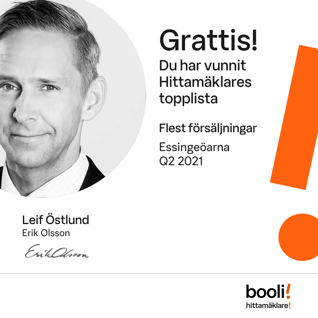 Statistik för publicerade bostäder, försäljningar och omdömen baseras på data från Booli och Hittamäklare. Statistiken för försäljningar avser inrapporterade och verifierade slutpriser från mäklare eller av Booli inhämtade och verifierade slutpriser. Statistiken för publicerade bostäder baseras på information som publicerats på Booli.se. Statistik för omdömen och rekommendationer baseras på omdömen från säljare som lämnats via Booli och Hittamäklare.