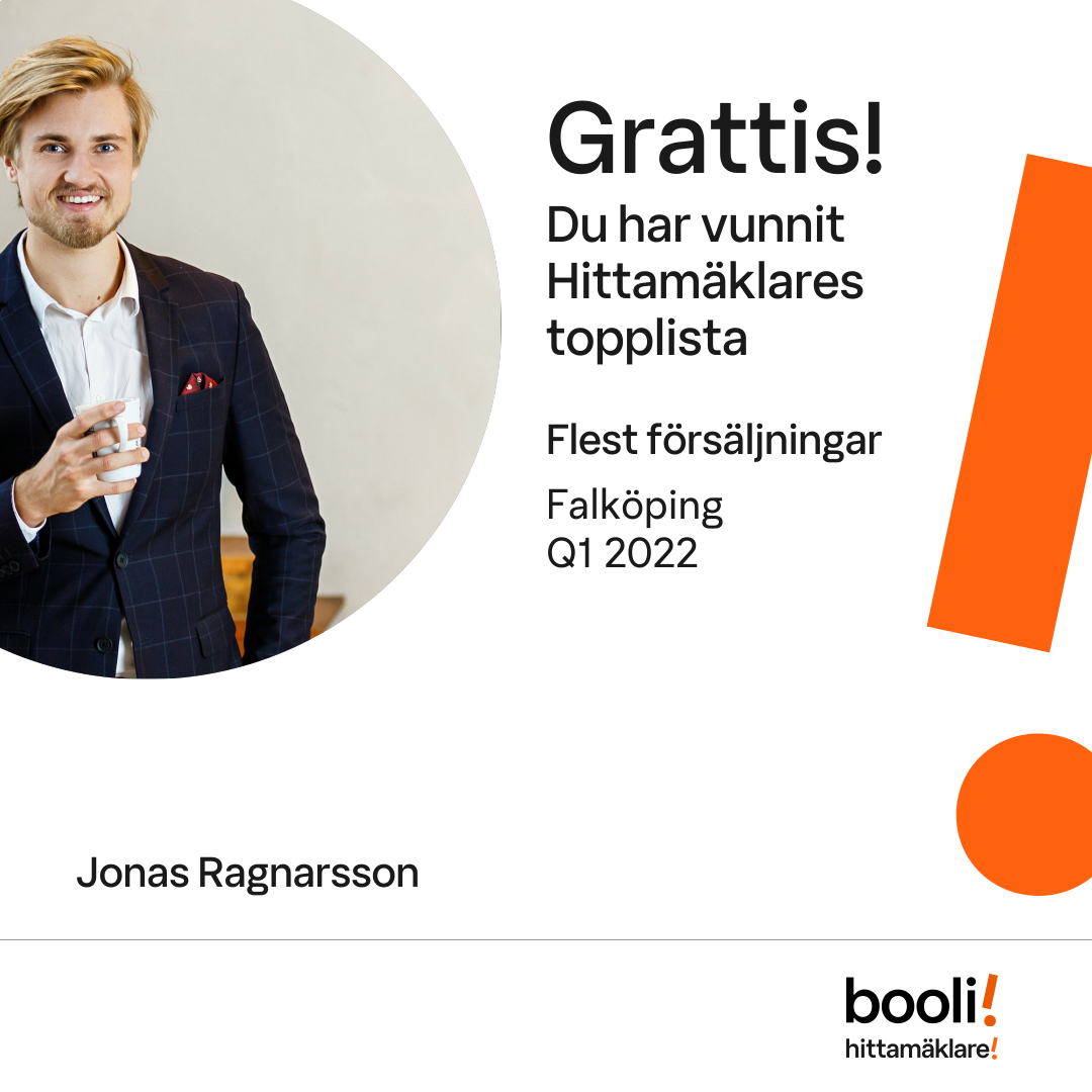 Statistik för publicerade bostäder, försäljningar och omdömen baseras på data från Booli och Hittamäklare. Statistiken för försäljningar avser inrapporterade och verifierade slutpriser från mäklare eller av Booli inhämtade och verifierade slutpriser. Statistiken för publicerade bostäder baseras på information som publicerats på Booli.se. Statistik för omdömen och rekommendationer baseras på omdömen från säljare som lämnats via Booli och Hittamäklare.