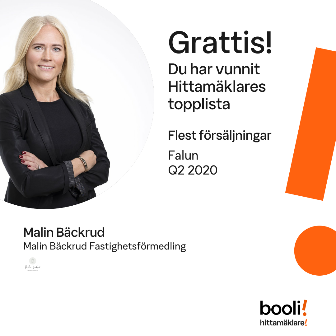 Statistik för publicerade bostäder, försäljningar och omdömen baseras på data från Booli och Hittamäklare. Statistiken för försäljningar avser inrapporterade och verifierade slutpriser från mäklare eller av Booli inhämtade och verifierade slutpriser. Statistiken för publicerade bostäder baseras på information som publicerats på Booli.se. Statistik för omdömen och rekommendationer baseras på omdömen från säljare som lämnats via Booli och Hittamäklare.