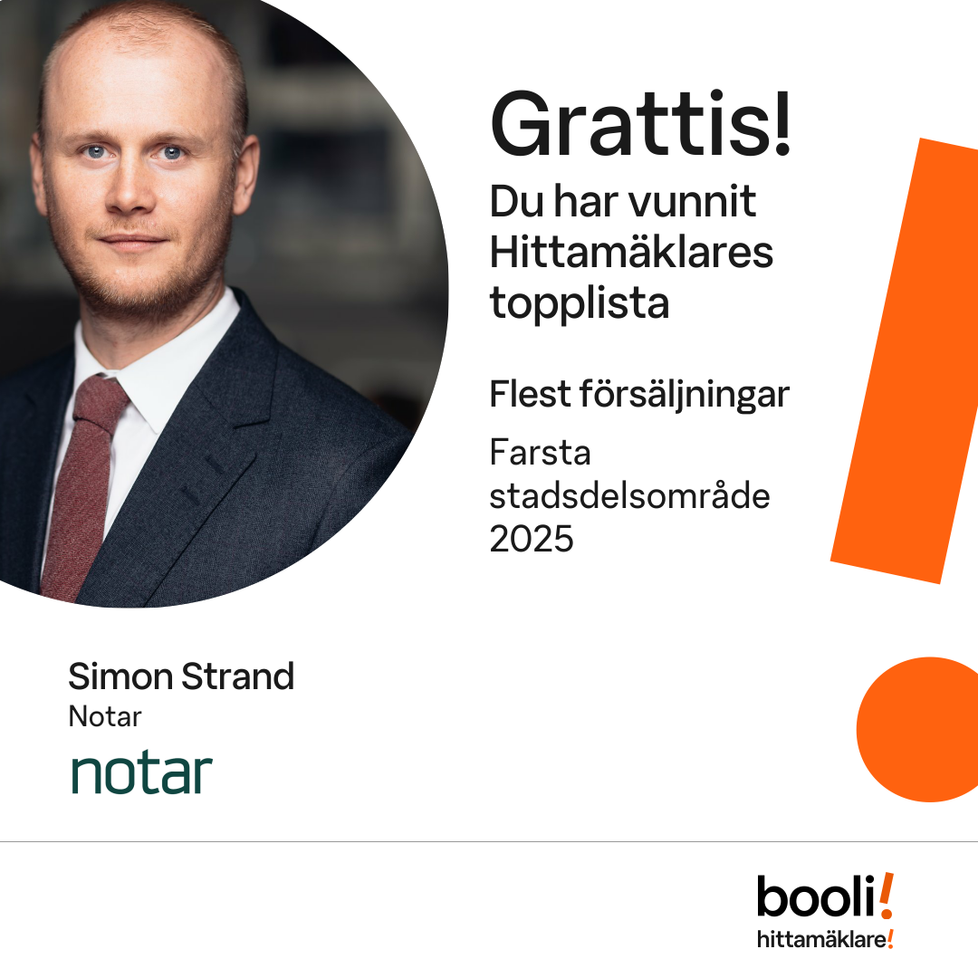 Statistik för publicerade bostäder, försäljningar och omdömen baseras på data från Booli och Hittamäklare. Statistiken för försäljningar avser inrapporterade och verifierade slutpriser från mäklare eller av Booli inhämtade och verifierade slutpriser. Statistiken för publicerade bostäder baseras på information som publicerats på Booli.se. Statistik för omdömen och rekommendationer baseras på omdömen från säljare som lämnats via Booli och Hittamäklare.