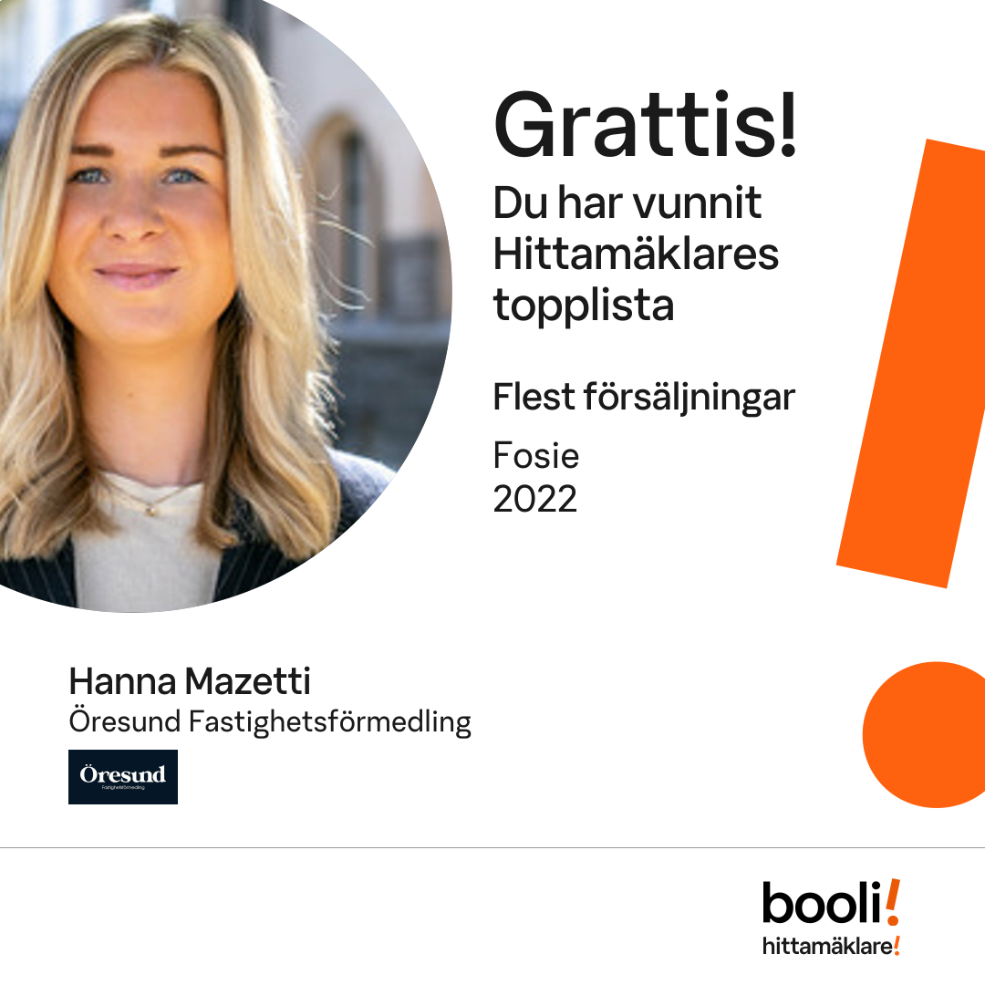 Statistik för publicerade bostäder, försäljningar och omdömen baseras på data från Booli och Hittamäklare. Statistiken för försäljningar avser inrapporterade och verifierade slutpriser från mäklare eller av Booli inhämtade och verifierade slutpriser. Statistiken för publicerade bostäder baseras på information som publicerats på Booli.se. Statistik för omdömen och rekommendationer baseras på omdömen från säljare som lämnats via Booli och Hittamäklare.