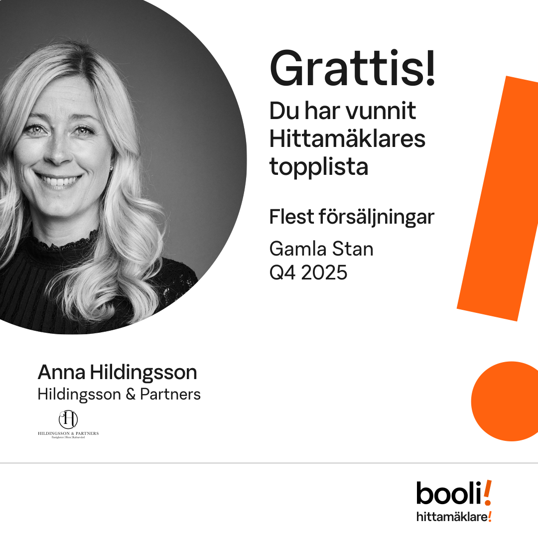 Statistik för publicerade bostäder, försäljningar och omdömen baseras på data från Booli och Hittamäklare. Statistiken för försäljningar avser inrapporterade och verifierade slutpriser från mäklare eller av Booli inhämtade och verifierade slutpriser. Statistiken för publicerade bostäder baseras på information som publicerats på Booli.se. Statistik för omdömen och rekommendationer baseras på omdömen från säljare som lämnats via Booli och Hittamäklare.