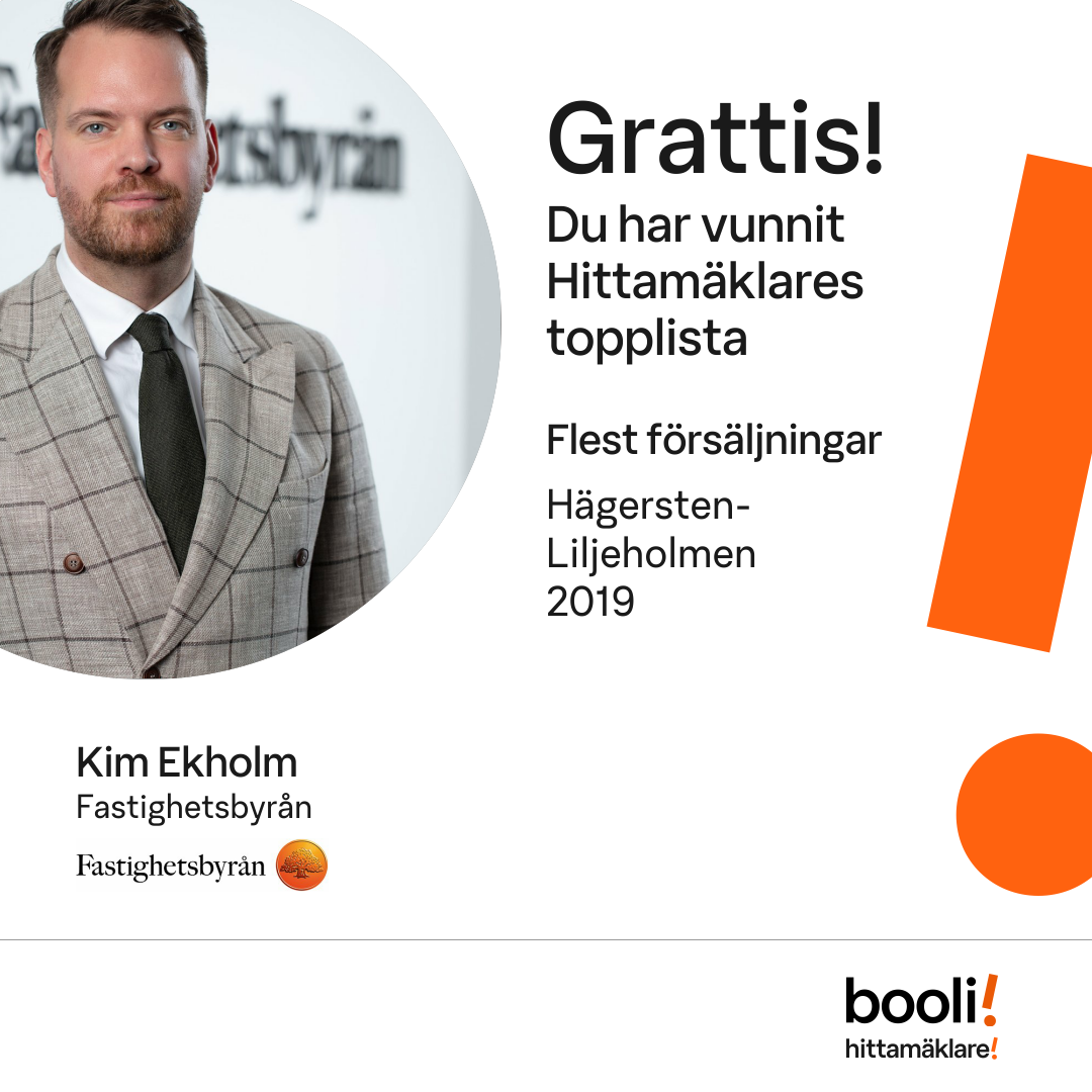 Statistik för publicerade bostäder, försäljningar och omdömen baseras på data från Booli och Hittamäklare. Statistiken för försäljningar avser inrapporterade och verifierade slutpriser från mäklare eller av Booli inhämtade och verifierade slutpriser. Statistiken för publicerade bostäder baseras på information som publicerats på Booli.se. Statistik för omdömen och rekommendationer baseras på omdömen från säljare som lämnats via Booli och Hittamäklare.