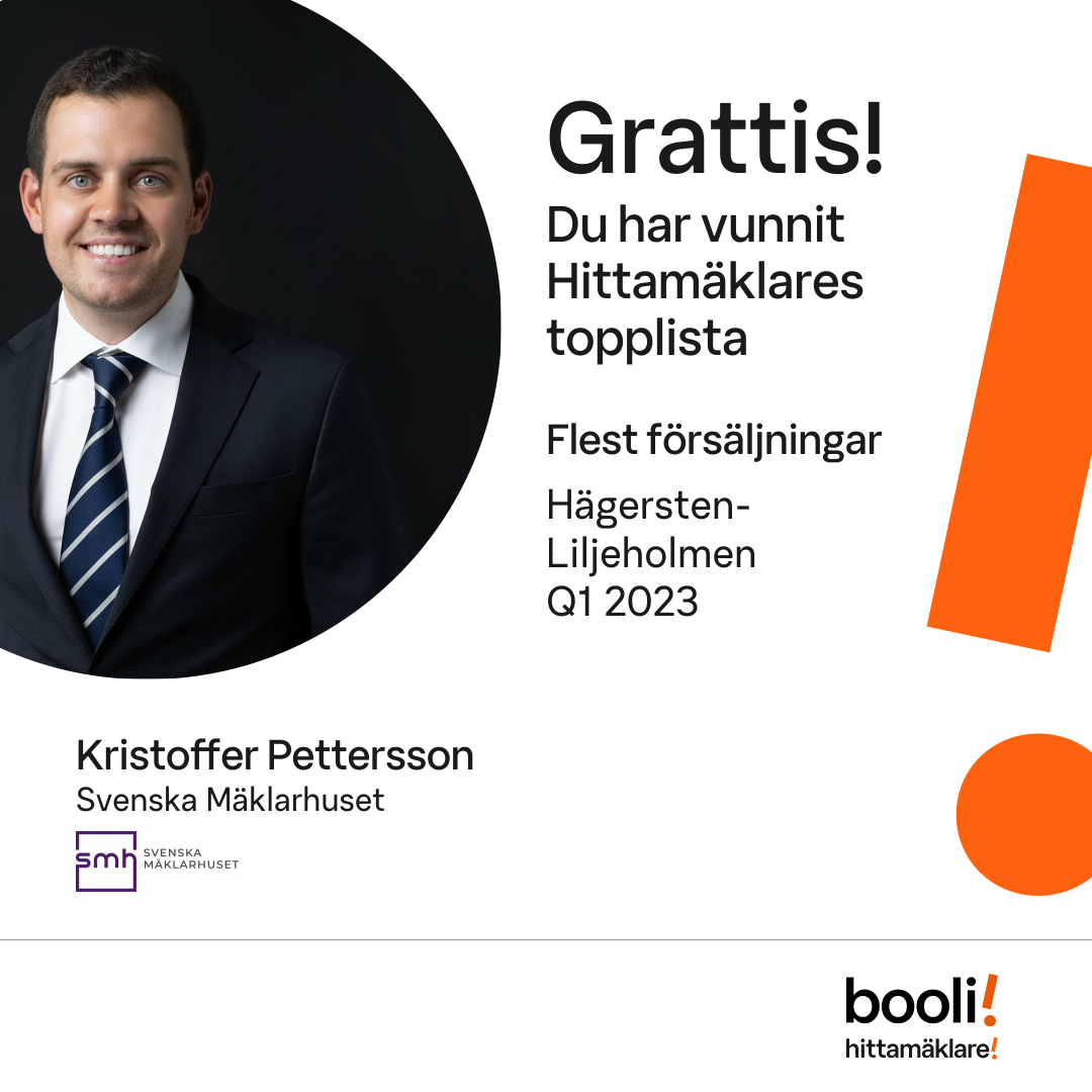 Statistik för publicerade bostäder, försäljningar och omdömen baseras på data från Booli och Hittamäklare. Statistiken för försäljningar avser inrapporterade och verifierade slutpriser från mäklare eller av Booli inhämtade och verifierade slutpriser. Statistiken för publicerade bostäder baseras på information som publicerats på Booli.se. Statistik för omdömen och rekommendationer baseras på omdömen från säljare som lämnats via Booli och Hittamäklare.