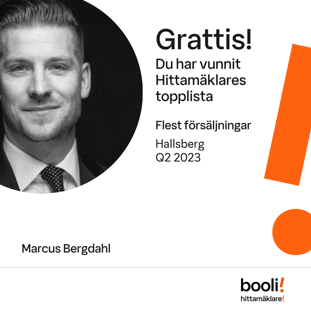Statistik för publicerade bostäder, försäljningar och omdömen baseras på data från Booli och Hittamäklare. Statistiken för försäljningar avser inrapporterade och verifierade slutpriser från mäklare eller av Booli inhämtade och verifierade slutpriser. Statistiken för publicerade bostäder baseras på information som publicerats på Booli.se. Statistik för omdömen och rekommendationer baseras på omdömen från säljare som lämnats via Booli och Hittamäklare.