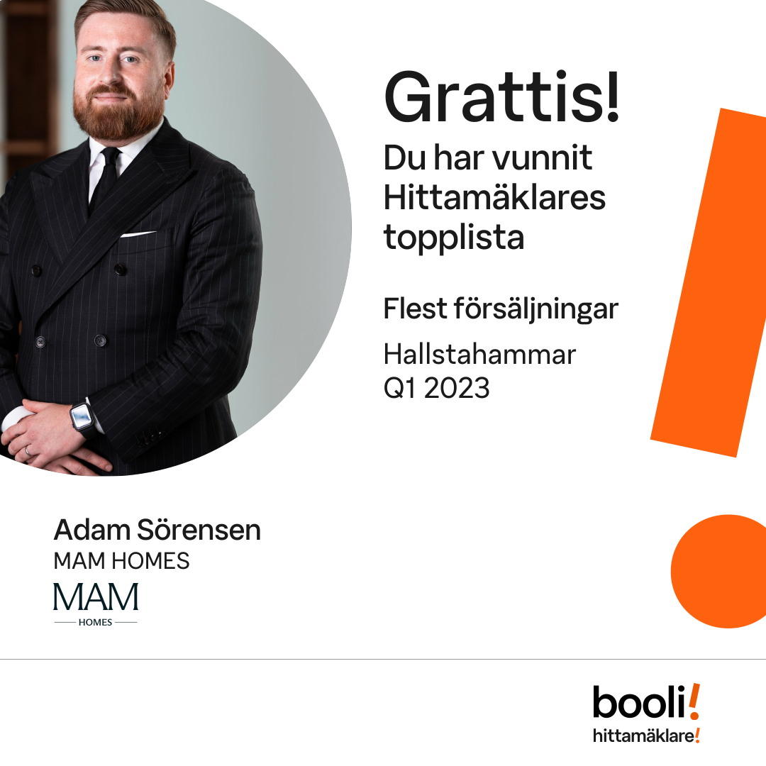 Statistik för publicerade bostäder, försäljningar och omdömen baseras på data från Booli och Hittamäklare. Statistiken för försäljningar avser inrapporterade och verifierade slutpriser från mäklare eller av Booli inhämtade och verifierade slutpriser. Statistiken för publicerade bostäder baseras på information som publicerats på Booli.se. Statistik för omdömen och rekommendationer baseras på omdömen från säljare som lämnats via Booli och Hittamäklare.