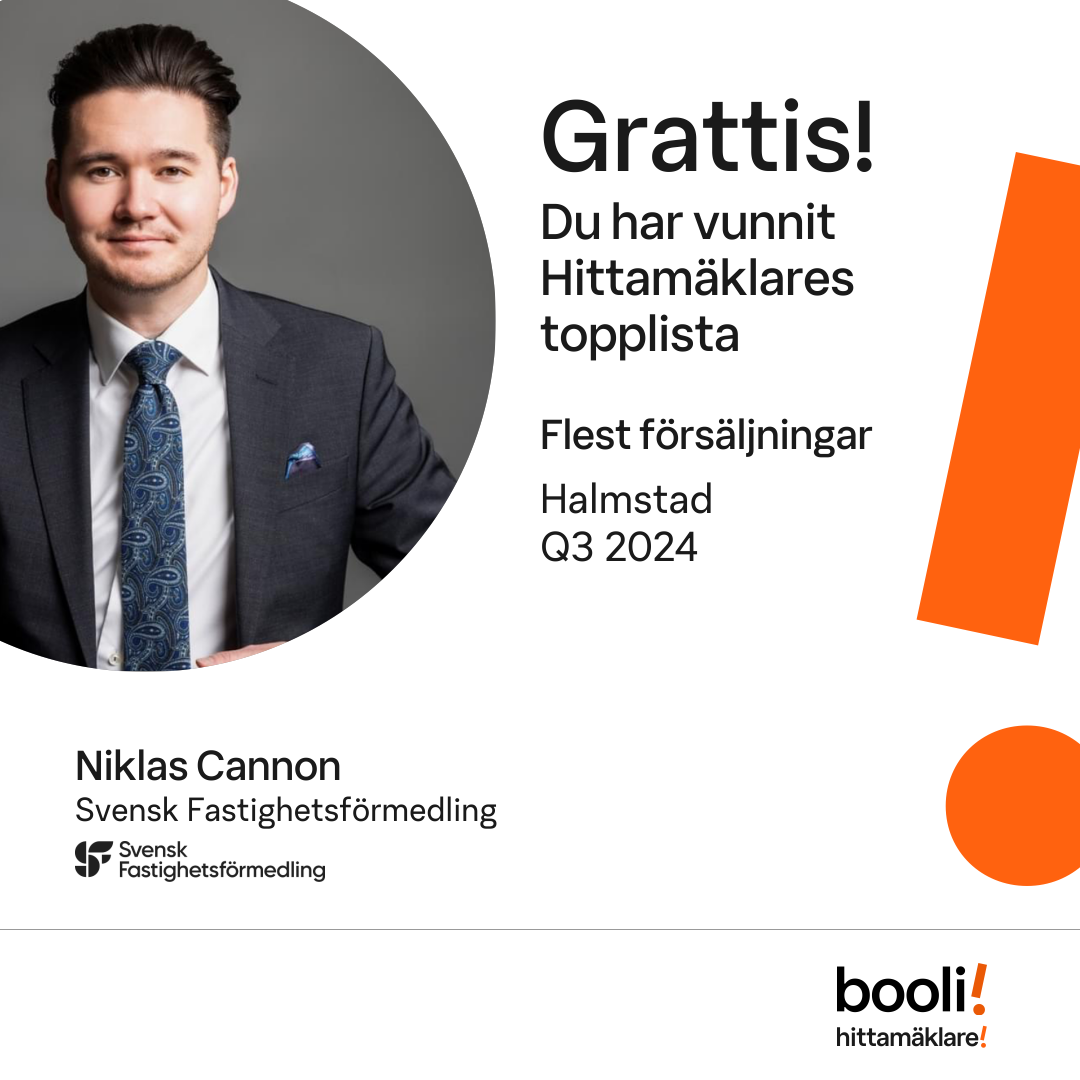 Statistik för publicerade bostäder, försäljningar och omdömen baseras på data från Booli och Hittamäklare. Statistiken för försäljningar avser inrapporterade och verifierade slutpriser från mäklare eller av Booli inhämtade och verifierade slutpriser. Statistiken för publicerade bostäder baseras på information som publicerats på Booli.se. Statistik för omdömen och rekommendationer baseras på omdömen från säljare som lämnats via Booli och Hittamäklare.