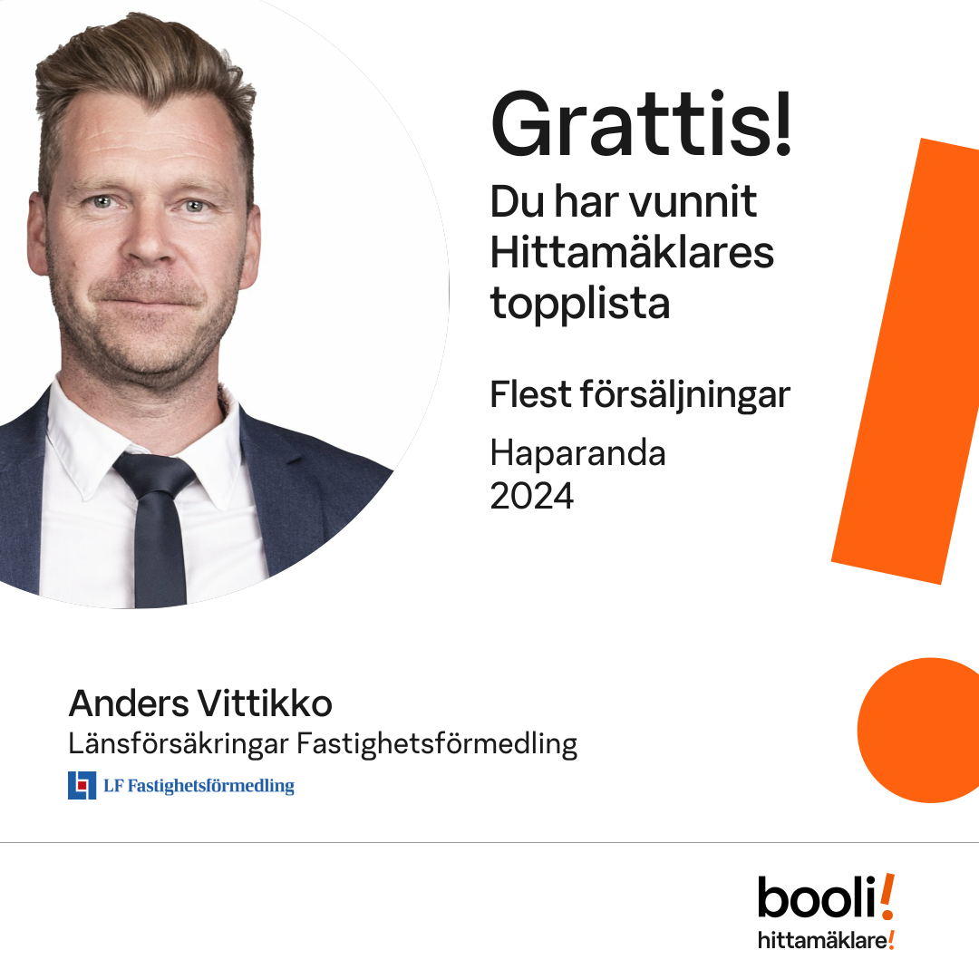 Statistik för publicerade bostäder, försäljningar och omdömen baseras på data från Booli och Hittamäklare. Statistiken för försäljningar avser inrapporterade och verifierade slutpriser från mäklare eller av Booli inhämtade och verifierade slutpriser. Statistiken för publicerade bostäder baseras på information som publicerats på Booli.se. Statistik för omdömen och rekommendationer baseras på omdömen från säljare som lämnats via Booli och Hittamäklare.